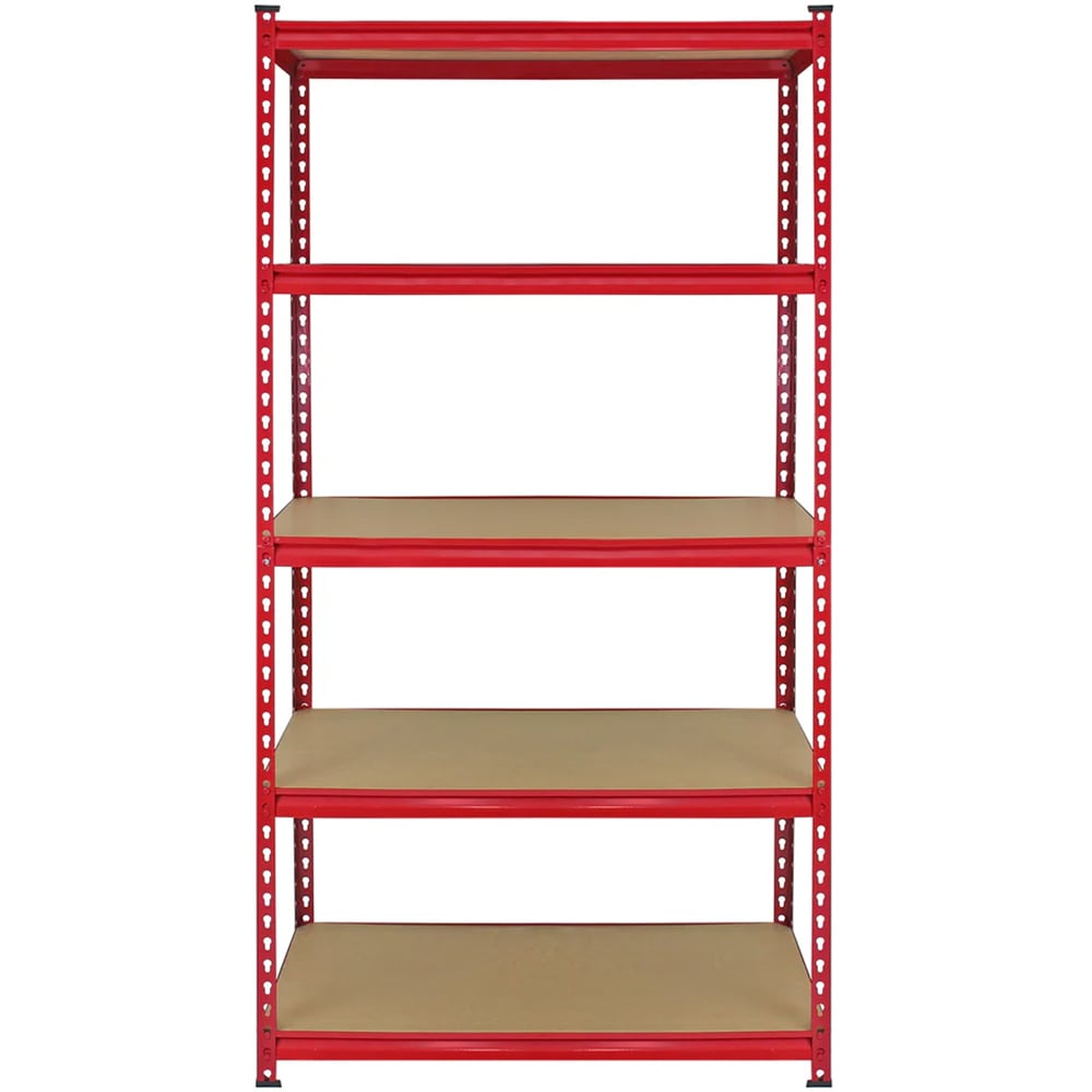 Get your space organized and save money with the Monster Shop Z-Rax Red Metal Racking Units with Mallet 90cm 10 Pack. These heavy-duty steel shelving units are ideal for warehouses or garages. They are 100% boltless and made from tough four-layer powder-coated 1.2mm heavy-duty steel. With Z-shaped beams, the racking bay is easy to build and can hold a mighty 360 kg per shelf. The shelves feature thick MDF shelf boards and moulded feet for extra support. The dimensions are H183 x 90 x 45cm.