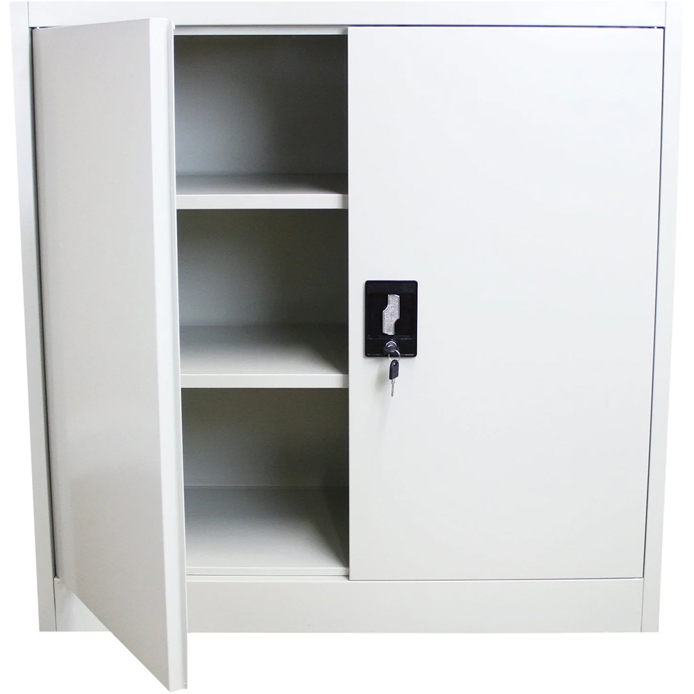 Ideal for the office or at home these strong powder-coated metal storage lockers come with 2 lockable doors and 2 adjustable shelves. Great for storing files and other office supplies! Due to its classic design, it suits any office decor and is sure to be a great addition to the office. Offering space and security, you can fit any type of document in your cabinet due to the shelves being adjustable and the added locking mechanisms ensure your private documents remain secure and safe. Arriving flat-packed, these filing cabinets are quick and easy to assemble – You will be loading them up with supplies in no time!