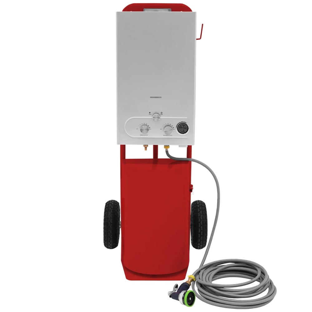 Transform your horse grooming routine with this Monstershop Deluxe Red Portable Horse Shower, a cutting-edge system that combines efficiency, convenience, and thoughtful design. Whether at the stable or on the move, this revolutionary setup ensures your horse enjoys a spa-like bathing experience, while you benefit from enhanced features that make grooming easier and more effective than ever. At the core of the system is a powerful 36kW battery-powered boiler, capable of heating water from 0 to 75 degrees Celsius with remarkable efficiency, ensuring your horse receives a consistently warm and soothing shower, perfect for post-exercise clean-ups or indulgent grooming sessions. The generous 18L capacity provides an extended water supply, making it ideal for longer or more rigorous bathing routines. Harnessing the power of butane gas, the system guarantees a swift and reliable heating source, allowing you to give your equine companion a thorough and enjoyable clean. Supplied with a gas hose and regulator, all you need to do is provide your own gas bottle, up to 7kg, to experience safe and efficient fuel delivery to the boiler. Built for practicality and mobility, the shower is mounted on a durable trolley fitted with 10-inch pneumatic tyres, allowing it to move effortlessly over various terrains. The gas cylinder door discreetly conceals the cylinder for a neat and professional appearance, while the back panels with pre-drilled holes make attaching the boiler a breeze. A removable storage tray provides a handy space for keeping shampoos, grooming tools, or other essentials close at hand. A side hook offers quick and easy access to the 10-meter hose or additional accessories, ensuring everything stays organized while you work. The 9-pattern spray gun allows you to adjust the water flow to suit your needs, from a gentle mist for sensitive areas to a strong jet for deeper cleaning. To complement the bathing experience, the system comes with a curry comb and sweat scraper, offering added tools for a complete grooming routine. Whether you’re looking for a practical solution for routine cleaning, a refreshing shower after a long ride, or an indulgent spa-like experience for your horse, this portable shower provides everything you need in one efficient and reliable package.