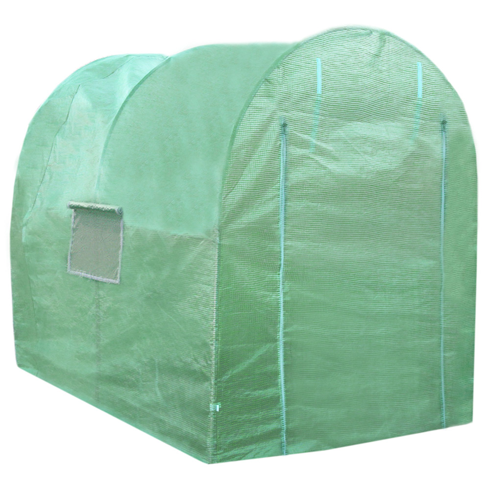 Protect your plants from the elements with the 4m x 2m polytunnel. Create your very own microclimate providing higher temperatures and humidity for fruit, vegetables and any other plants you are growing outside of their usual season. Waterproof and windproof, this polytunnel is the perfect solution to protect your crops, giving them the best start in life. The extra guide ropes and bracing bars at both ends give increased stability for those windy days! In the warmer seasons, your plants will also be shielded from strong damaging sunlight with the UV protection provided by the thick PE cover. Despite the strong frame, this polytunnel is easy to build, giving you the option to put it up temporarily when needed. With doors at both ends, access is easy, making tending to your plants as convenient as possible. With this amazing gardening solution, the weather won’t stop your green fingers!
