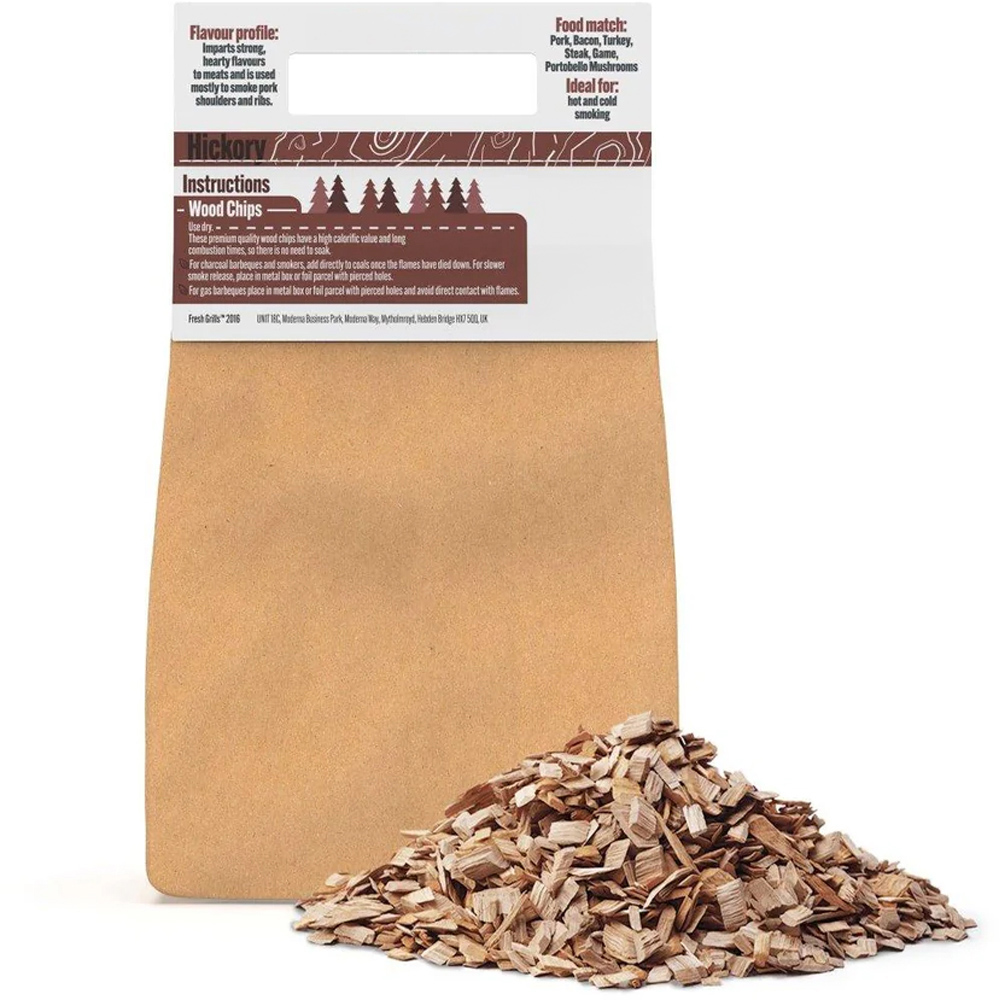 Enjoy cooking outdoors with MonsterShop Hickory Wood Chips for BBQ Grill Pizza Oven Kamado and Smokers 2.8kg. These 100% pure BBQ wood smoker chips are perfect for outdoor pizza ovens, Kamado ovens, BBQ smokers, and other wood-fired cooking appliances. They offer a high calorific value and low moisture content, ensuring a balanced burn and consistent temperature. Packaged in 100% recyclable paper and plastic-free, these chips are an eco-friendly choice for all your grilling needs.