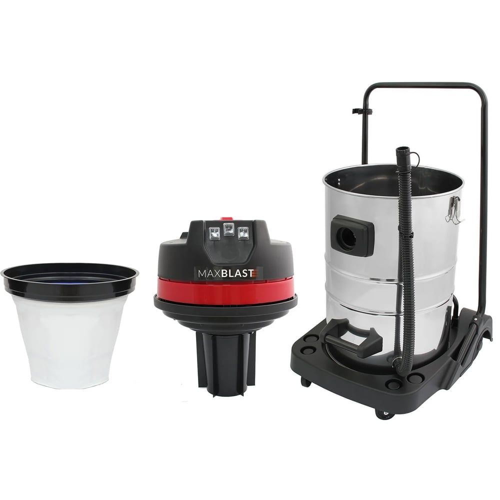 For all your professional cleaning needs, this powerful 80L industrial vacuum cleaner with a high-performance 3000W triple motor is always up for the job. Switch between the super practical wet and dry functions to suit the task at hand. Whether you need to clean up dirt, dust, pet hair or spillages, this multipurpose vacuum can tackle mess on a commercial scale. Coming with 4 useful attachments – 2 floor tools, a bristle head, and a crevice nozzle – you can adapt the hoover to each job whether that be on hard floors, carpet or difficult to reach places to ensure a thorough clean. The intelligent design allows the vacuum to be used with and without a bag. Going bag-less is ideal for wet and dry cleaning or choose to add one of the 4 included 80L dust bags to capture the collected dirt for easy, mess free disposal. Moving the vacuum around is made easy with 3 hard-wearing castor wheels which effortlessly glide across your floor space. This is further enhanced by an ergonomic handle fitted to the lid for convenient manoeuvring. Benefitting from an extra-long 9m power cable and a 1.5m hose, this hoover offers unrestricted movement in large areas. Made using strong stainless steel, the vacuum offers incredible durability for years to come, even with heavy use. Whatever you might need to vacuum, make your cleaning experience that little bit easier while achieving professional results with this powerful 80L Industrial Wet & Dry Vacuum Cleaner.