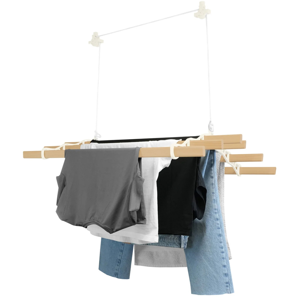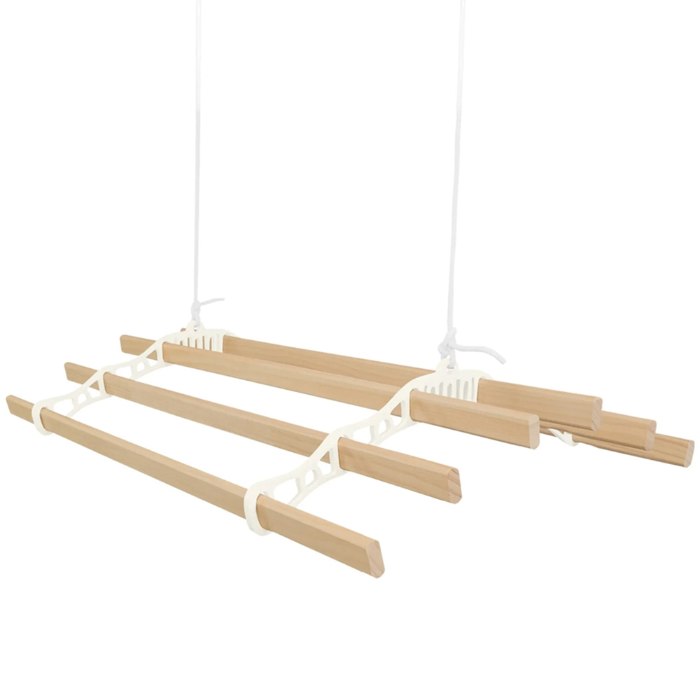 Discover a smarter, more elegant way to dry your laundry with our 0.9m 6-lath ceiling pulley clothes airer. Perfect for those who value both functionality and style, this space-saving solution allows you to dry your clothes naturally while adding a touch of traditional charm to your home. Whether you're looking for a sustainable alternative to tumble dryers or simply need to maximise your living space, this ceiling airer has you covered. Built to last, the airer features six varnished pine laths, each 90cm long, offering generous space for large clothing loads, towels, or bedding. The sturdy pulley system is easy to use and designed to lift heavy items effortlessly. Fitted with robust powder-coated iron rack ends and brackets in a sophisticated hue, this airer not only enhances your space but also ensures lasting durability. The included fixings make setup a breeze, allowing you to easily mount the airer to most ceiling types, including sloped ones, for versatile and convenient use. With its blend of timeless design and practical features, this ceiling pulley airer is a wonderful addition to any home. Enjoy the benefits of natural drying while adding a touch of charm to your space, making laundry day a little more enjoyable.