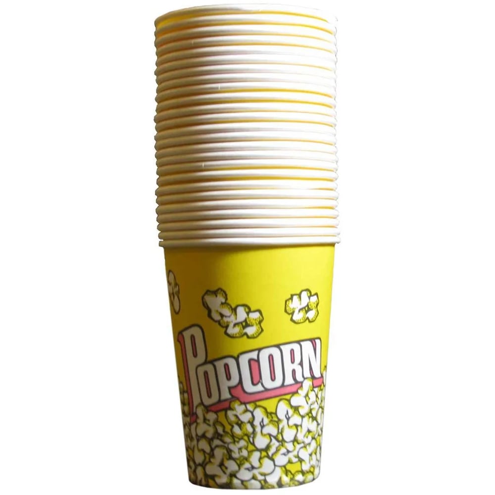 Popcorn—a simple yet beloved snack, enjoyed by movie-lovers worldwide. Whether it's sweet, salted, buttery, or drizzled with toffee, popcorn offers endless possibilities, from healthy to indulgent. Make every occasion more fun with this set of 25 large 900g popcorn cartons. Perfect for parties, fun fairs, birthdays, or any celebration, these cartons are designed to hold generous portions of popcorn, standing 14cm tall with an 11cm diameter. Unlike many other cartons, these are made from high-quality, leak-resistant cardboard, ensuring no messy spills while you enjoy your favourite treat. With their vibrant, sturdy design, these cartons not only look great but are sure to impress your customers, family, or friends. Ideal for professional use or casual gatherings, these durable popcorn containers are a must-have for any event that calls for snacking in style.