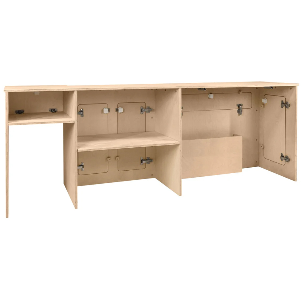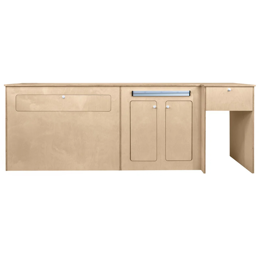 Elevate your next adventure with the MonsterShop Left Hand Camper Kitchen Pod. Constructed from sturdy 15mm birch plywood, this kitchen pod boasts a sleek, natural appearance that seamlessly complements any camper van interior. Its foldaway table and integrated storage compartments maximize space efficiency, ensuring your essentials are well-organized and easily accessible. The double-door cupboard features an adjustable shelf for unparalleled flexibility, and the versatile towel holder can be placed wherever you prefer. Personalize your setup with our versatile towel holder, which features a secure sticky back for easy placement. Enjoy hassle-free meal prep on your travels thanks to the kitchen pod's convenient layout and ample workspace. The dimensions are H74.3 x W211 x D51.5cm, and the total load capacity is 82.1kg.