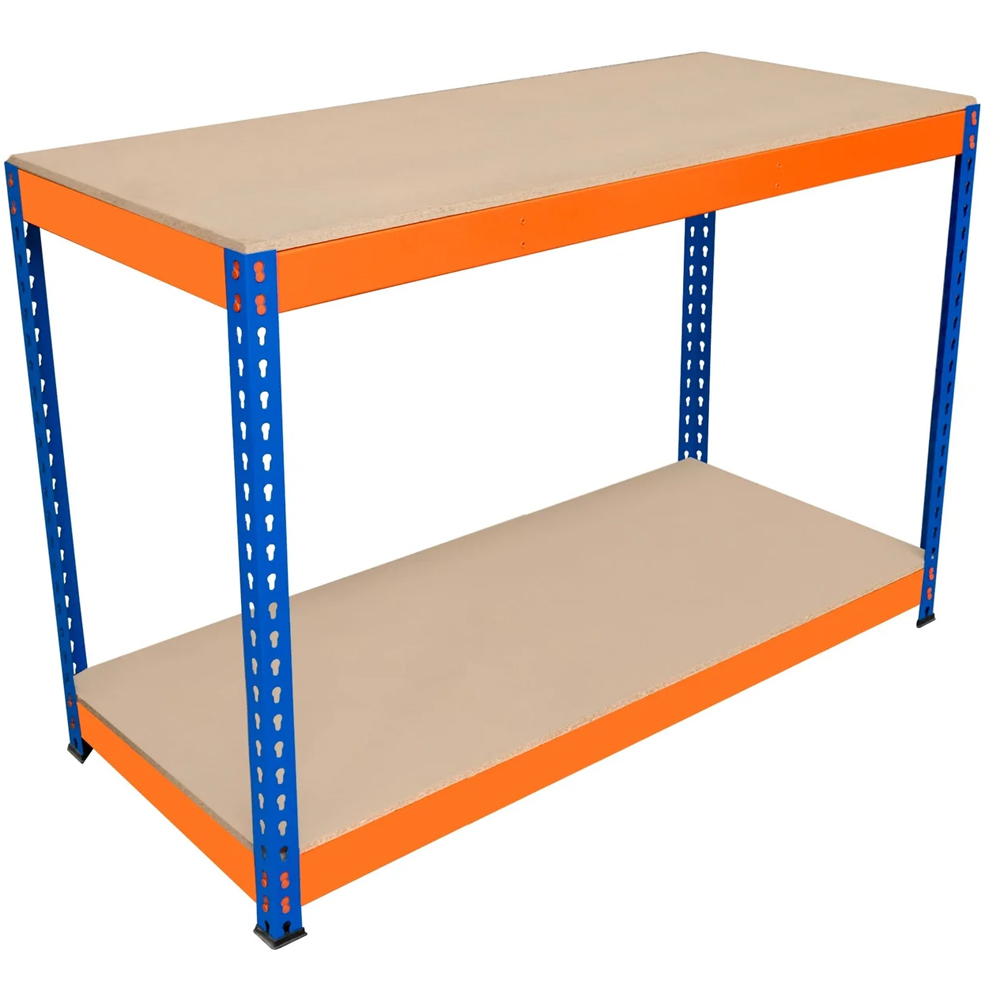 Transform your garage into a high-efficiency workspace with this robust workbench. Constructed with a heavy-duty steel frame and durable chipboard shelves, this workbench is built to withstand demanding tasks and provide reliable support. What's more, its steel frame is meticulously coated with powder paint, ensuring prolonged resistance against wear, thereby enhancing its longevity. Whether you're working on large projects or need to store heavy tools and materials, this workbench has you covered. Flexibility is key with the adjustable lower shelf arrangement, allowing you to customise the spacing according to your needs. Plus, the workbench offers a 100% boltless assembly design, making setup quick and hassle-free, allowing you to get to work in no time. The workbenches come with support bars per shelf for added sturdiness and reliability. Bid farewell to shaky surfaces and embrace the assurance of a steady workspace. In addition, the workbenches come equipped with rubber feet to safeguard both the floor and the unit itself, minimising damage and maximising stability. Ideal for professional tradespeople and DIY enthusiasts alike, this spacious and practical workbench is the ultimate upgrade for your workshop, making your DIY projects easier than ever to carry out.