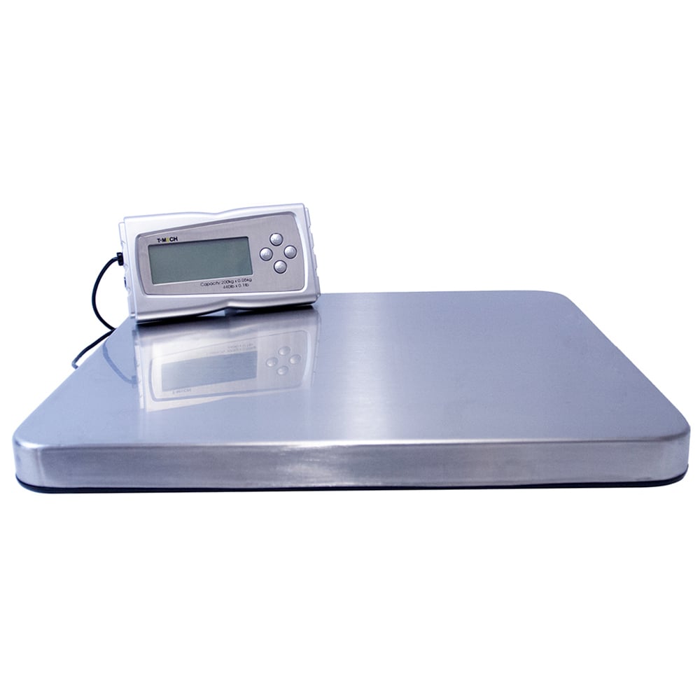 The T-Mech heavy-duty postal scales are the ideal electronic weighing scale for businesses, small and large, online sellers and manufacturers. Suited for measuring the weight of small, medium and large postal items, this digital weighing device is low profile and gives accurate readings on the digital LCD display. Whether you're measuring small, medium or large postal items, this digital postal scale device will give you a super accurate reading on its clear LED display. Heavy Duty Postal Scale Features: Electronic heavy duty postal scales with stainless steel weighing platform. Includes mains adaptor with 13A 3 pin UK plug Weighs a range of postal items - parcels, packages and boxes Measures in kilograms or pounds Weighs up to 200kg in 50g increments or 440lbs in 0.1lb increments Tare function - sets the display to zero, this is perfect for weighing items in a container allowing you to gain an accurate weight of the contents 4 feet provide support and increase stability Remote indicator display with fold out stand LCD screen can be backlit for clearer viewing Powered by the included mains adaptor or 4 x AA (1.5V) batteries (not included) Ideal for use in an office, warehouse or even the home With such a large maximum capacity of 200kg/440lbs and a stainless steel weighing platform measuring approximately 41cm wide and 36cm deep, you can measure the weight of different postal items including packages, parcels and boxes. For simple operation, the heavy duty digital postal scales can be used on the floor or a flat surface to easily place your postage item. The remote indicator can then be positioned for your personal requirements using the fold down stand and the LCD display may be backlit for easier viewing. The platform postal scales are compatible with both mains and battery power, the included mains cable can be plugged into a power supply or 4 x AA (1.5V) batteries (not included) can be installed; this allows the device to be positioned or moved freely depending on your set up. Postal Platform Scale Specifications: Dimensions: 41cm wide x 36cm deep x 4.5cm high Capacity: 0 - 200kg x 0.05kg / 0 - 440lb x 0.1lb Maximum capacity: 200kg/440lb Measuring units: kg (kilograms) and lb(pounds).