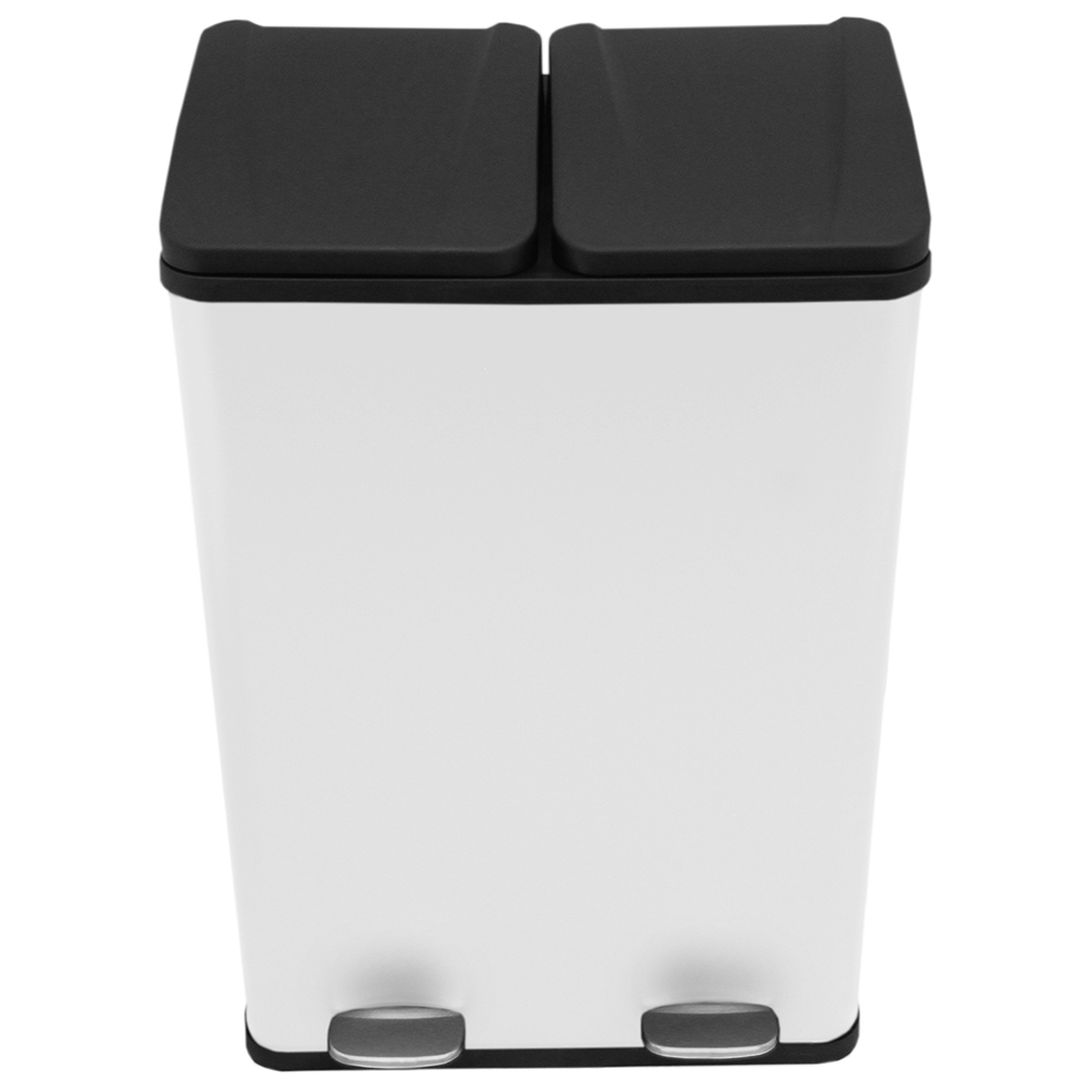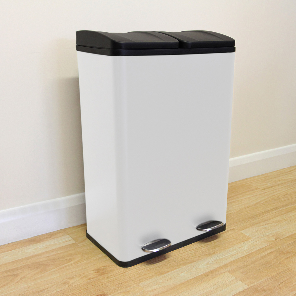 Keep your kitchen clean and tidy with the Yes. With 2 x 30L compartments, there is plenty of room for both recycling and general waste. Simply press the foot pedal to open one compartment at a time. This minimal hand contact, pedal-operated bin provides maximum hygiene levels. The built-in handles on the removable compartments make emptying your rubbish effortless. Stability is no problem at all for this heavy-duty bin. It has a non-slip, non-marking rubber base. Not only is this bin perfectly practical, but it looks good too. The stainless-steel body covered in layers of white powder-coating paint will add a modern, stylish look to any room. Includes a free microfibre cloth to help you keep your home looking immaculate.