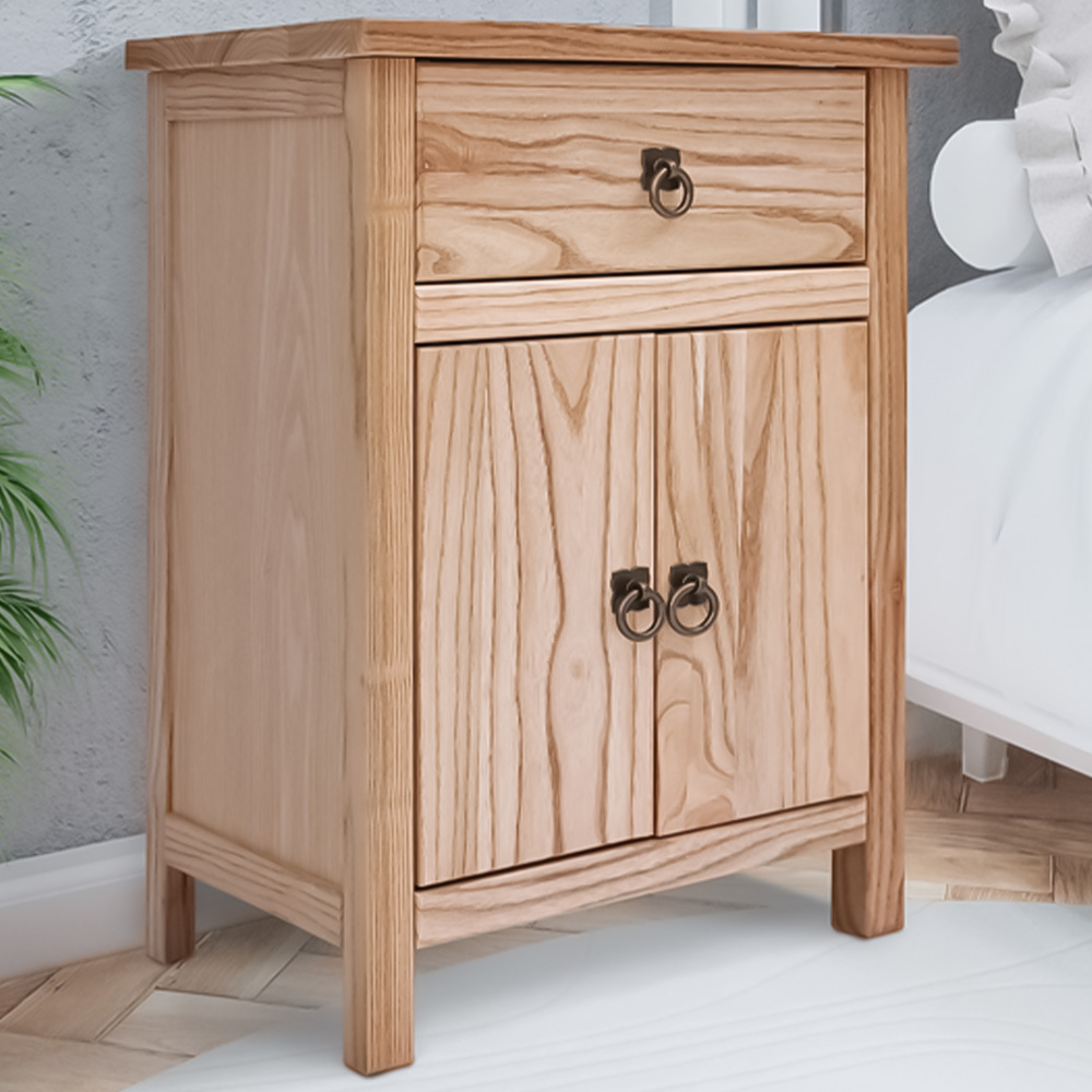 Montese 2 Door Single Drawer Light Wood Bedside Table with Ring Handle