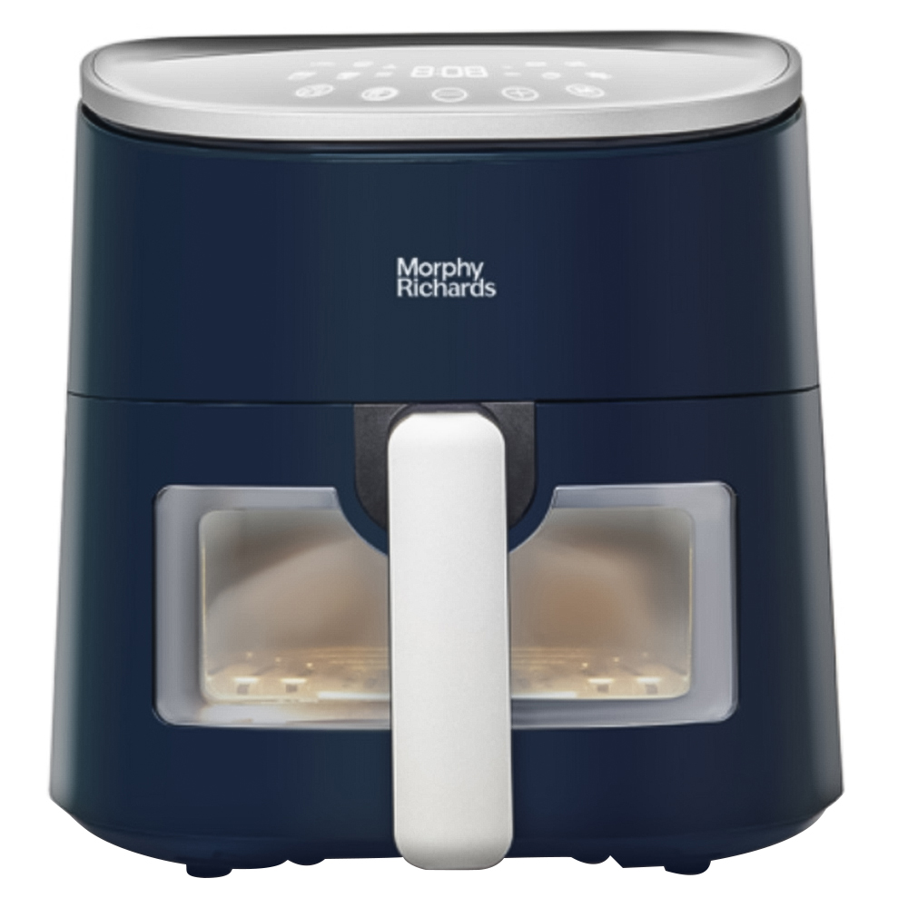 Looking to add some tasty crunch to your cooking? You can use this Morphy Richards Blue 4L Digital Airfryer to spruce up your cooking. Versatile and convenient, this air fryer allows you to fry, grill, bake, roast or dehydrate with ease. It features an efficient compact design that helps it sit well in your kitchen and comes with a large 4L capacity ideal for family-sized meals. You can keep a check on the food while it's cooking through the look-through window and choose between eight pre-set recipes so you can enjoy quick and easy meals.