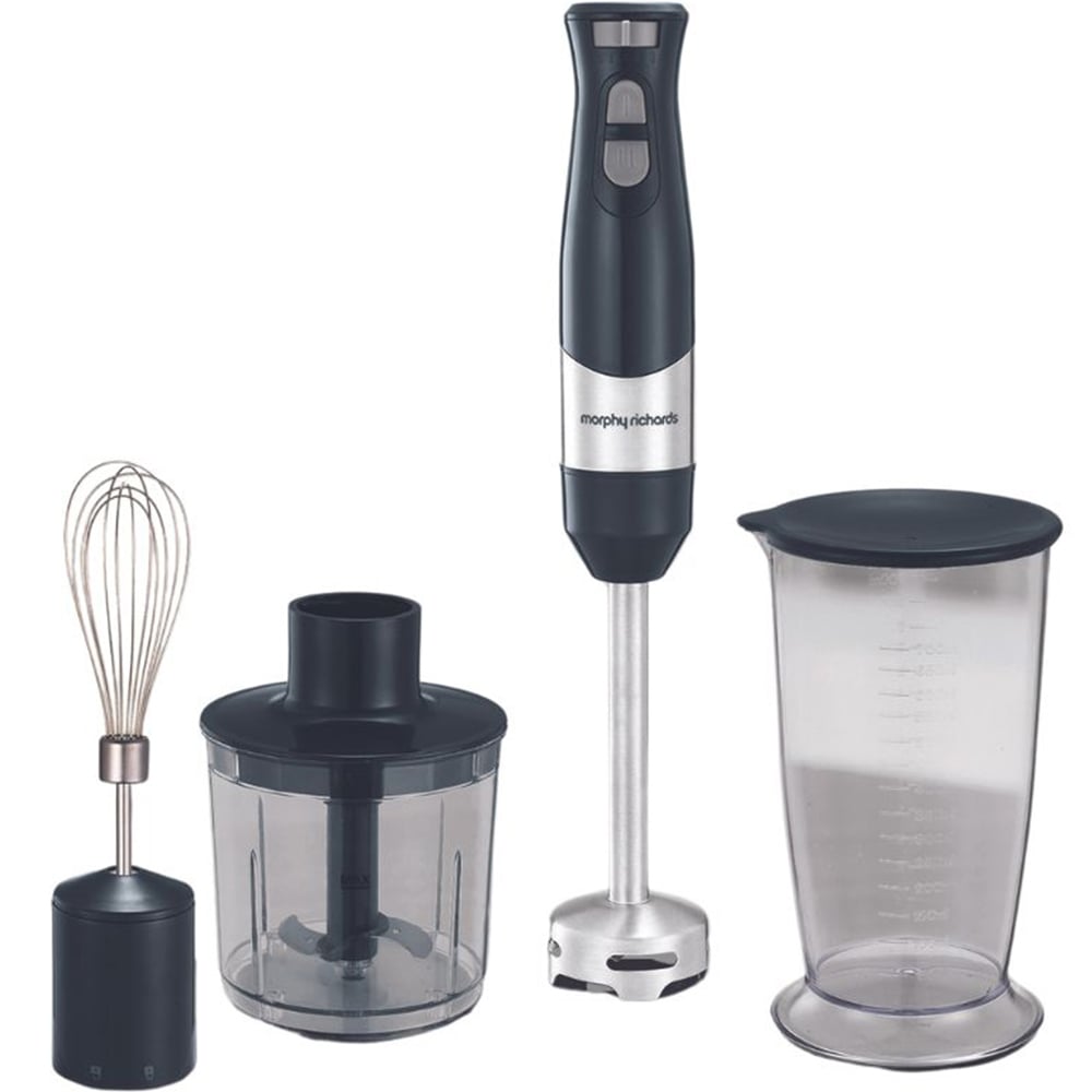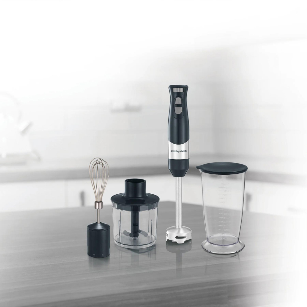 Make a brilliant addition to your kitchen with the Morphy Richards 638197 Total Control Grey Hand Blender Set 600W. This sleek hand blender has 600W power and five separate speed settings so you can easily control your creations. For those times when you need an extra burst of blending, try using the turbo setting which is perfect for making smoothies in a hurry. Its compact design makes it great for smaller spaces or apartments where traditional processors just won’t fit. It includes a blending jug, a chopper and a whisk, ideal for assisting you in preparing delicious recipes in no time.