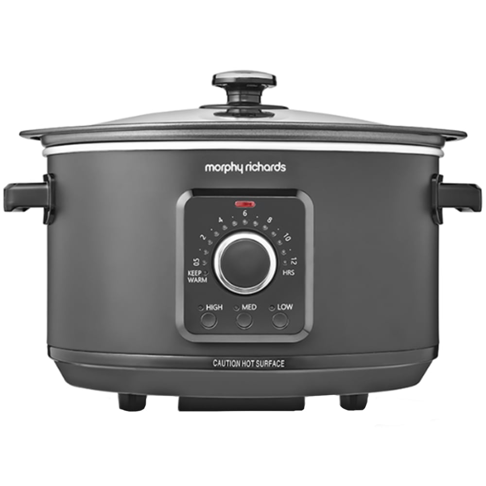 Make everyday meals more delightful with the Morphy Richards 638203 Black 3.5L Slow Cooker. The 3.5L capacity is ideal for preparing four main course dishes or heating meals quickly and conveniently. It features a high-quality, transparent glass lid that helps in retaining the flavours and nutrients, giving you an unmatched flavour experience. With its unique dial feature, you can pick when you want your meal to be done without any guesswork. This cooking pot is dishwasher-safe and shatterproof, but it is not suitable for induction. The automatic shut-off and keep-warm feature keeps your meal warm for up to two hours after the timer has been completed. Make delicious meals and take care of all your culinary needs with this splendid slow cooker.