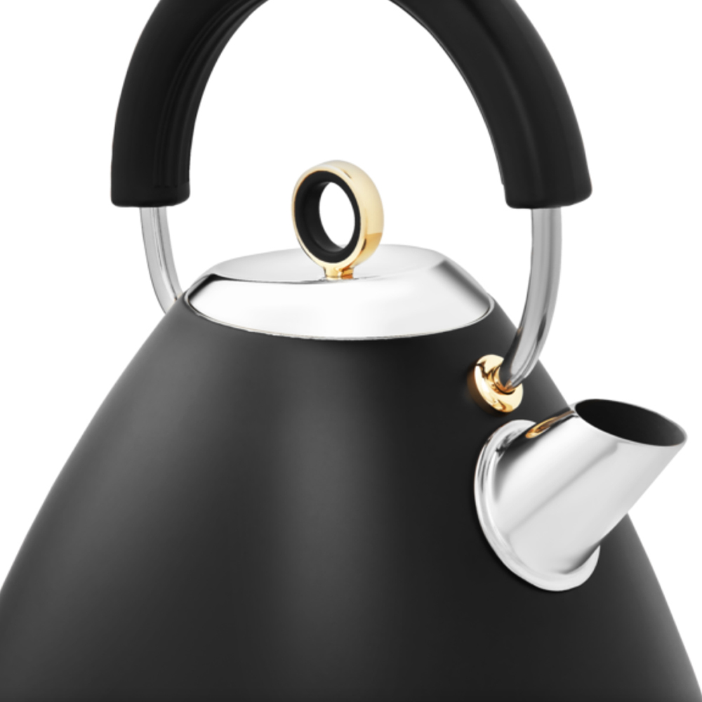 The perfect combination of classic style and modern features, the Morphy Richards Black Accents Pyramid 1.5L Kettle is the ideal addition to any stylish kitchen countertop. There's nothing better than a cup of tea, but making it with a beautiful kettle sure does help. Featuring classy gold accents and an iconic pyramid silhouette, this kettle is sure to make a statement in any home. This kettle boasts a 1.5L capacity and 3kW rapid boil element for faster brews, an easy-view water window to help save energy by only boiling what you need, and a removable limescale filter ensuring you get a quality drink every time.