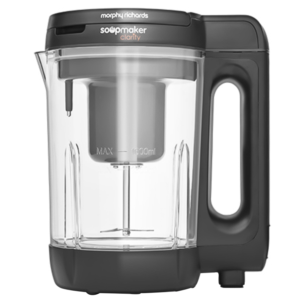 Cook tasty soups conveniently with this Morphy Richards Clarity 501050 Black 1.6L Soup Maker. Crafted from unique crystal-clear Tritan plastic, you can keep an eye on the cooking progress easily. This soup maker sports an automatic safety cut-off feature to help prevent overfilling. With a generous 1.6L capacity, you can cook up to four servings of nourishing soup in one go. Its user-friendly display makes it easy to use, you can easily keep track of the cooking time with the LED countdown display. Perfect for busy households, this soup maker allows you to make delicious soups that suit your taste conveniently.