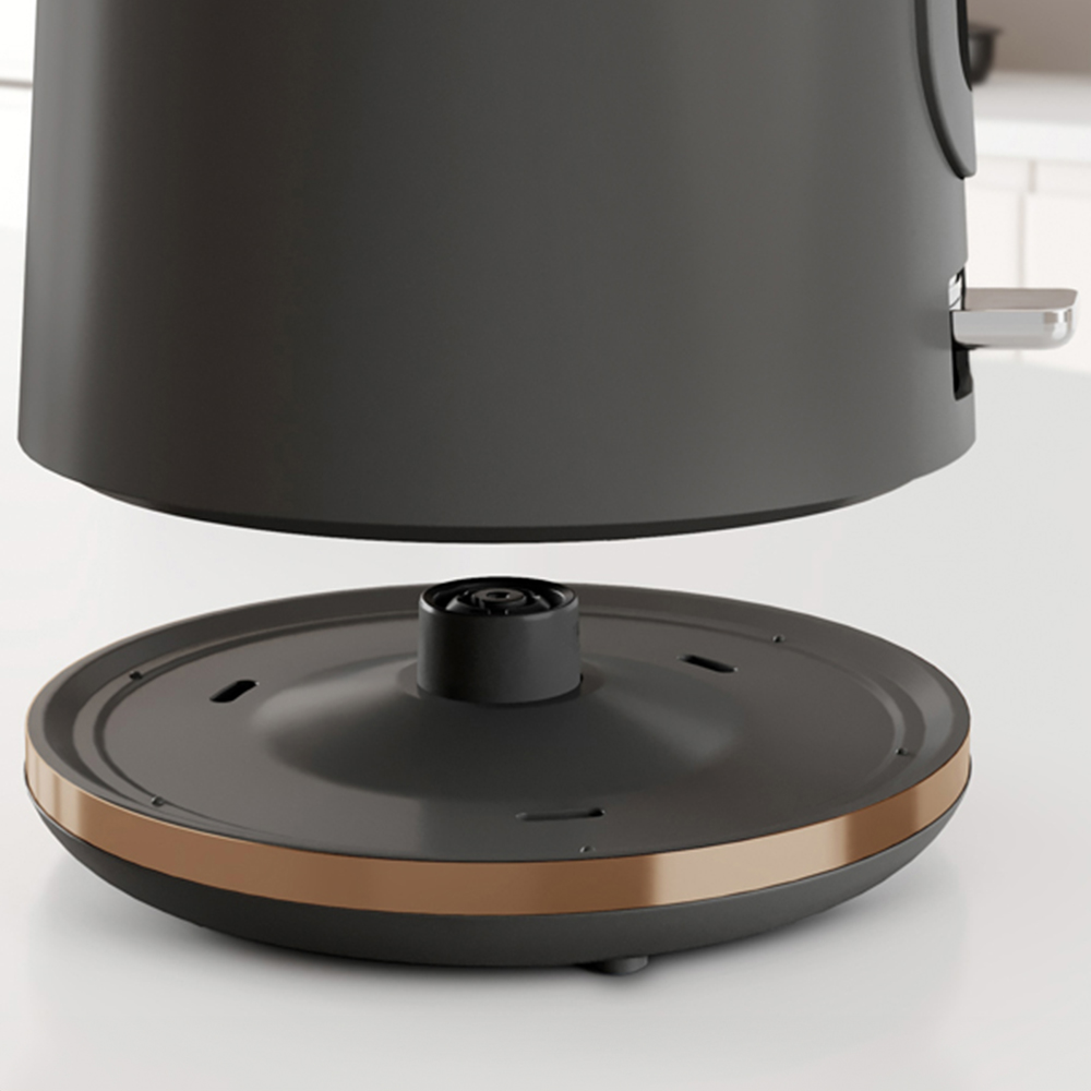 The Morphy Richards Copper Signature 360 Degree Base Jug Kettle is the ultimate kitchen centrepiece, delivering tasty tea and a touch of brightness to your home. Its impressive 1.5L capacity ensures everyone in the family can enjoy a hot drink when needed. With a 3kW element and rapid boil feature, your favourite beverage is ready in no time! With its calming blue lights, it will give you a moment to relax and unwind while you wait for your cuppa, and an easy-view water window helps you keep an eye on what’s boiling inside without wasting energy. The 360-degree base allows you to dock from any direction with ease.