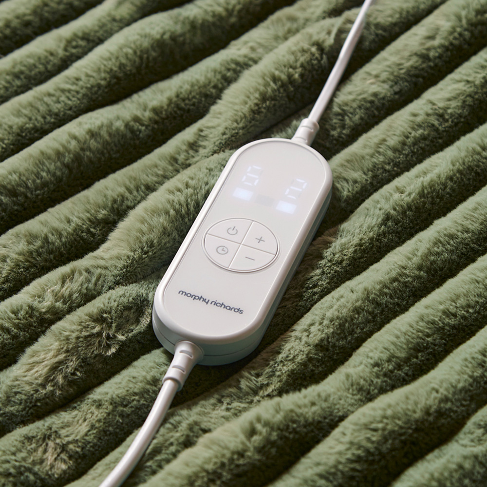 Morphy Richards Green Flannel Fleece and Striped Faux Fur Heated Electric Throw 200 x 180cm