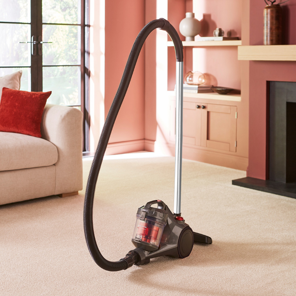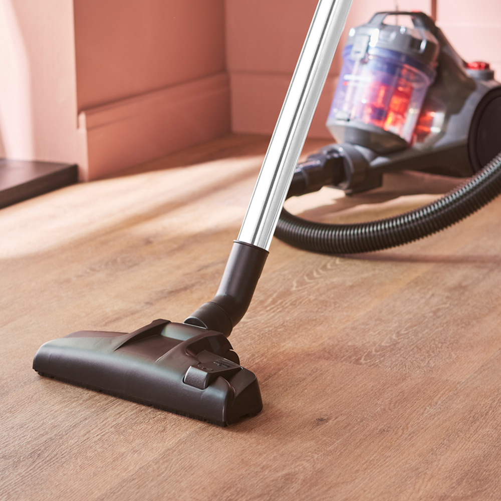 Power through cleaning days with a compact cylinder vacuum cleaner that tackles dust, mould and pet hair with ease, thanks to its HEPA filtration system capturing up to 99% of particles for a fresher home. Enjoy longer cleaning sessions with a 2L dust bin and a 5m cord that lets you reach every corner without hassle, while the lightweight design makes carrying up and down stairs in Ireland a breeze. Switching between surfaces is simple with the included main and 2-in-1 combination brush, making this bagless cylinder vacuum a practical choice for busy households.