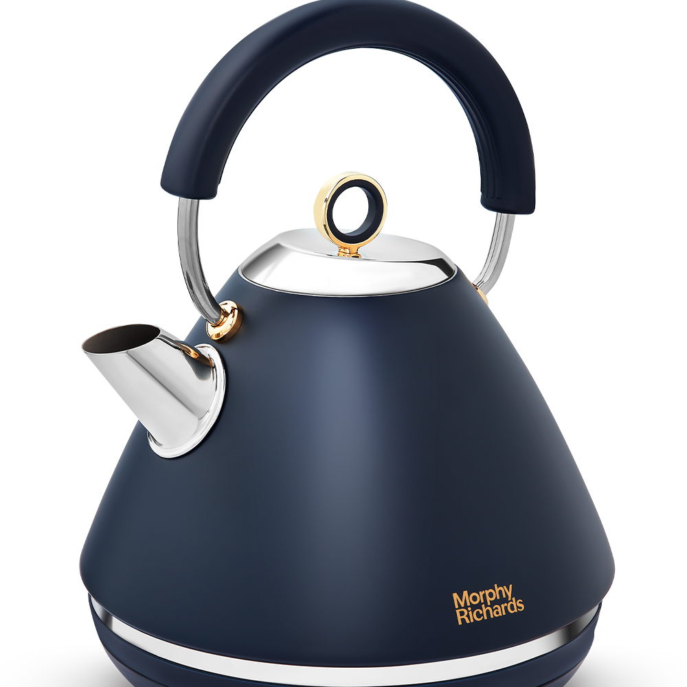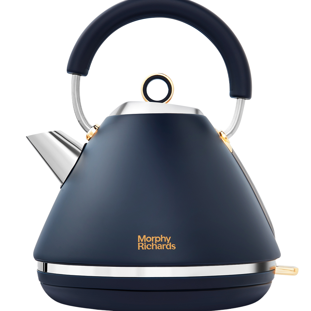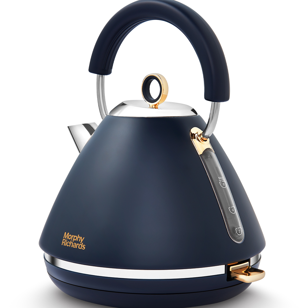The perfect combination of classic style and modern features, the Morphy Richards Navy Accents Pyramid 1.5L Kettle is the ideal addition to any stylish kitchen countertop. There's nothing better than a cup of tea, but making it with a beautiful kettle sure does help. Featuring classy gold accents and an iconic pyramid silhouette, this kettle is sure to make a statement in any home. This kettle boasts a 1.5L capacity and 3kW rapid boil element for faster brews, an easy-view water window to help save energy by only boiling what you need, and a removable limescale filter ensuring you get a quality drink every time.
