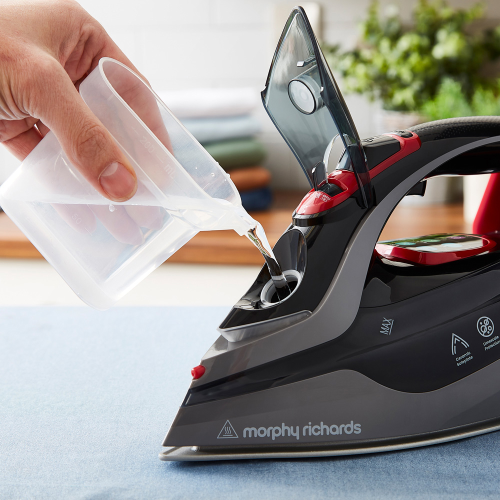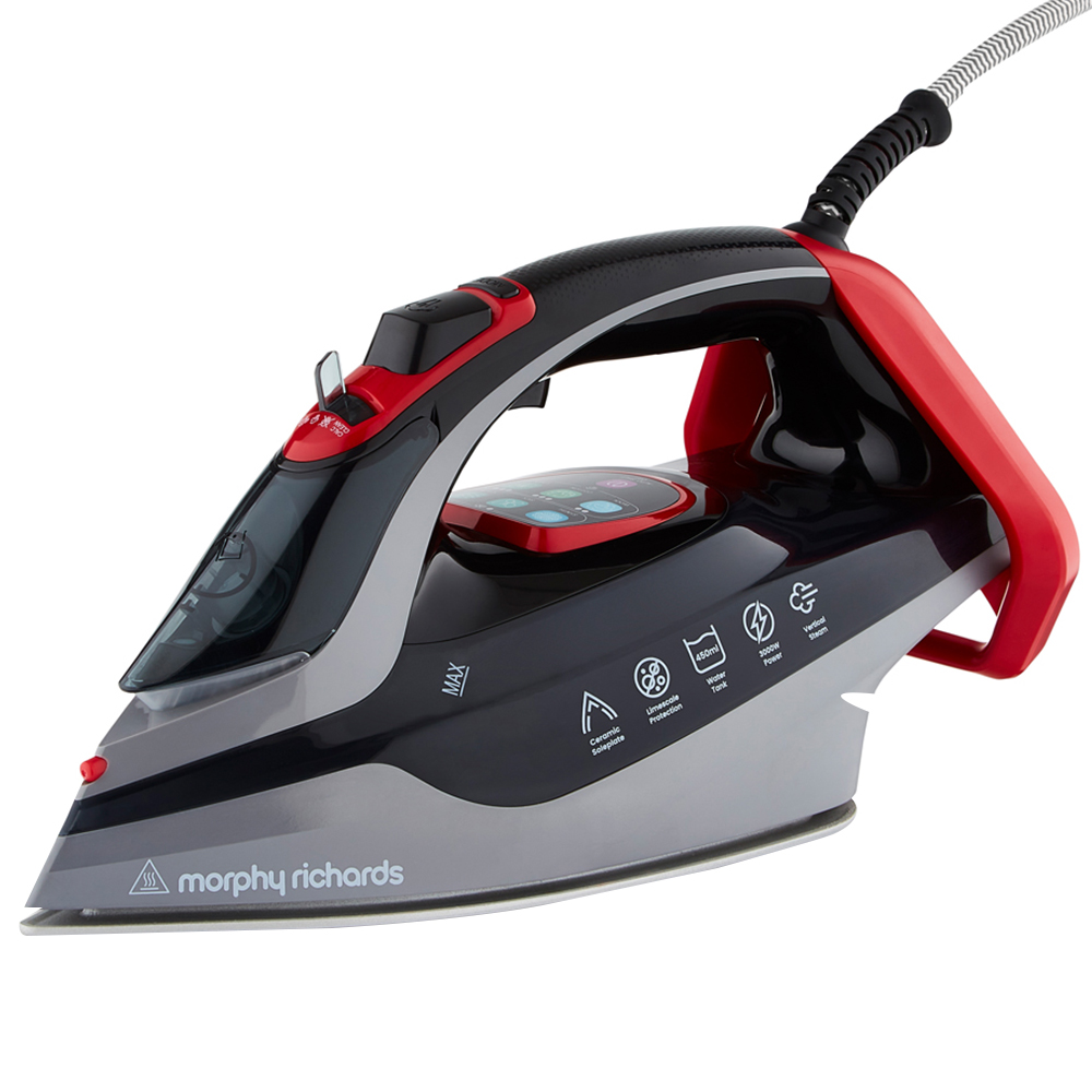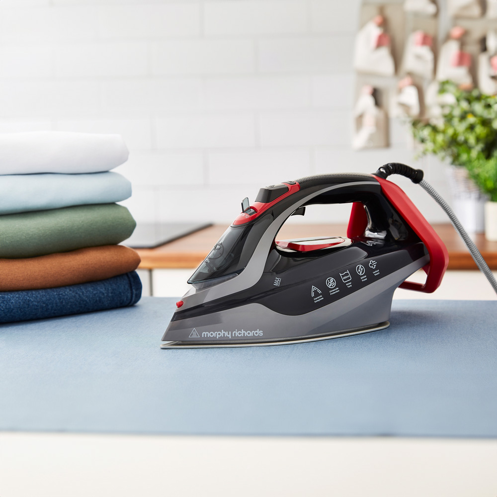 The Morphy Richards 3000W LED Steam Iron is an exceptional choice for any home, combining innovative features to deliver the best iron experience. Its ceramic sole plate ensures smooth and efficient ironing making it one of the best irons for clothes, while the 35g/min steam output and variable steam options make it easy to remove even the toughest wrinkles. The 450ml water tank capacity allows for extended ironing sessions without frequent refills, and the anti-drip feature keeps your clothes spotless. With anti-scale technology, this steam iron stays in optimal condition longer, and the self-clean feature simplifies maintenance. The 3-meter cable length provides added flexibility, while digital control offers precise adjustments for different fabrics. For added safety, the auto shut-off feature ensures peace of mind. Trust the Morphy Richards iron for superior performance and convenience, making it the best steam iron for your needs.