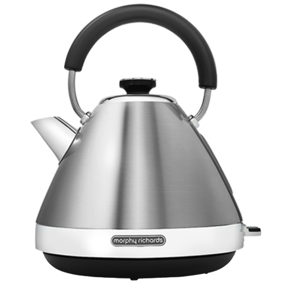 Experience the vintage elegance in the kitchen with Morphy Richards Venture 100130 Brushed Stainless Steel 1.5L Pyramid Kettle. With its timeless pyramid silhouette and vintage finish, the Venture Kettle won’t look out of place in any kitchen, bringing a sense of lasting style to even modern décor. The Venture Pyramid Kettle is the perfect combination of traditional style and modern technology. Featuring a 3kW element and rapid boil feature for faster brews, as well as an easy-view water window so you can save energy while enjoying your favourite beverage. The removable limescale filter ensures you'll always make a quality drink, and the built-in cord tidy keeps countertops free of clutter. This kettle is a must-have for tea aficionados.