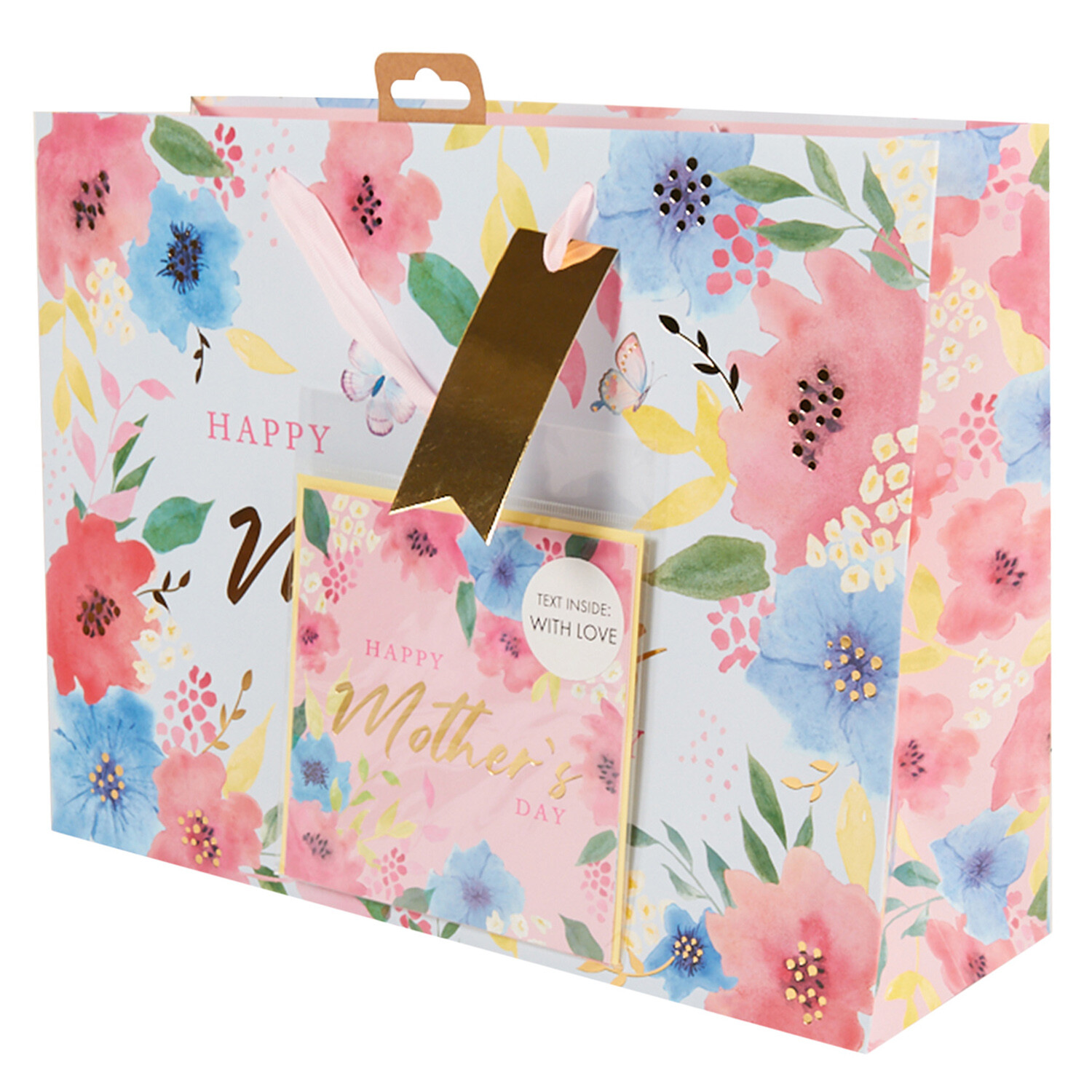 Celebrate Mother’s Day with the elegant Mother’s Day Floral Shopper Gift Bag. This gorgeous bag showcases a soft pastel floral pattern with charming watercolour flowers in pink, blue, and yellow hues. The bag is made from 210gsm white card and includes pink grosgrain handles for a touch of sophistication. The front is adorned with a gold foil tag that reads “Happy Mother’s Day”. The set also includes a 300gsm mat laminated card and an 80gsm white paper envelope, making it a complete and stylish gift packaging solution.