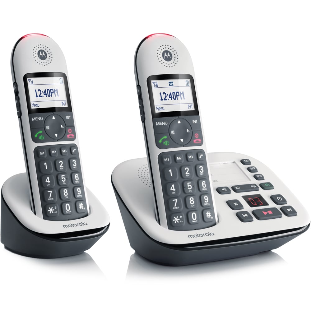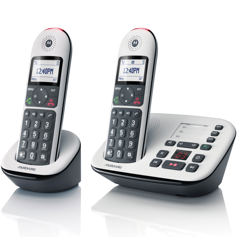 The Motorola CD5012 is built to make communication easy and accessible to everyone, delivering a multitude of helpful features in an attractive and stylish design. Featuring a large, easy to use keypad with illuminated graphics, the display is large and bright to ensure easy reading of the display information. Ergonomically designed, the handset has a tactile keypad and a rubber rear cover to provide comfort and secure grip. The Motorola CD5012 supports high performance audio options; with Hearing Aid Compatibility, amplification delivered using a dedicated key, and a ringer volume boost option so everyone can enjoy clear conversations. With up to 30 minutes digital recording time, double 7 segment message counter and night mode option, the Motorola CD5012 is the ideal choice for everyone. Other features include screensaver, out of range warning, call timer, microphone mute facility, last number redial, ability to name handsets, keypad lock, call transfer and intercom between handsets, ECO mode function and energy efficient charger, night mode, welcome mode, 20 ring melodies. For caller ID and call blocking features, you must subscribe to a Caller ID service from your landline provider.