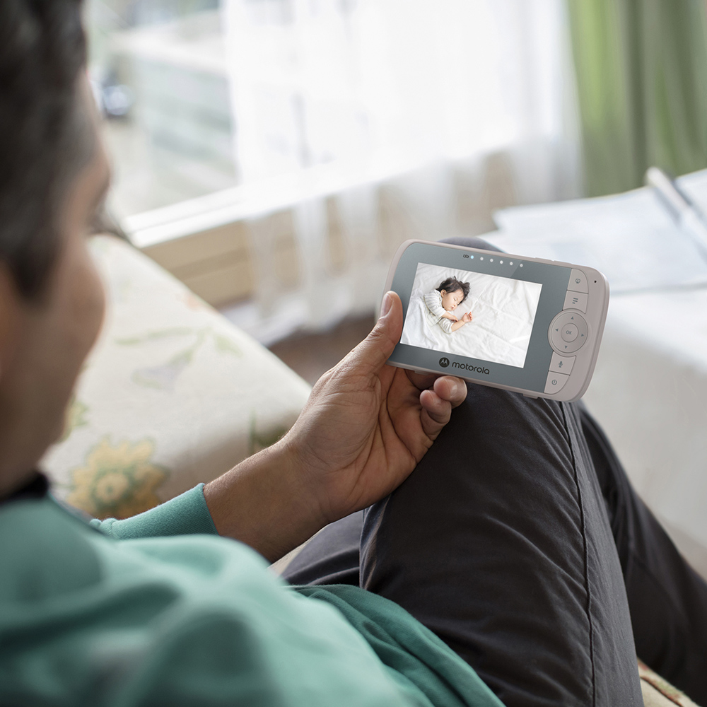 Make sure your little one is safe and sound with this Motorola VM64 Video Baby Monitor and Display in white. It includes a 4.3-inch screen and a camera with digital pan, tilt and zoom that connects to the Motorola Nursery app via Wi-Fi to enable Full HD (1080p) video. You can also speak to and hear your little ones from home or on the go with the two-way talk. Complete with a room temperature monitoring feature, it offers an easy way to keep an eye on your baby.