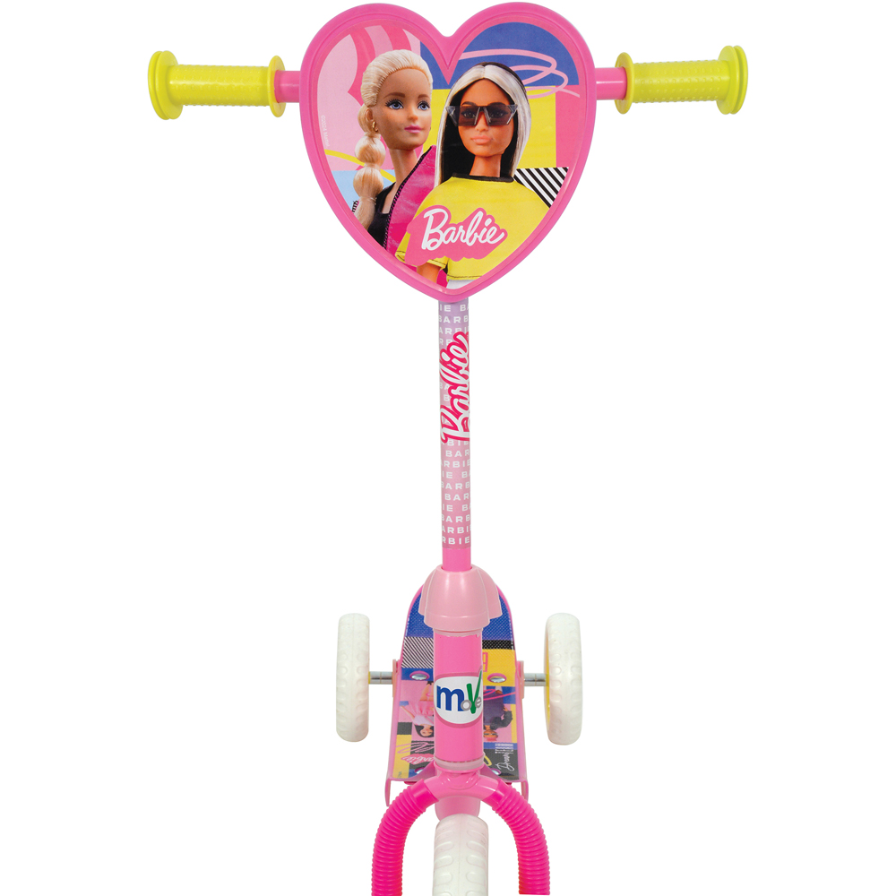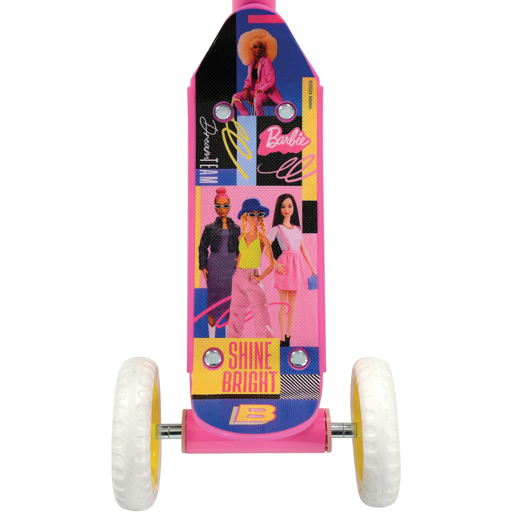 Get ready to turn up the fun with this Barbie-themed Deluxe Tri-scooter! Designed for little adventurers, this scooter is packed with features to make every ride a magical experience. The fully printed anti-slip footplate not only keeps your little one safe but also showcases cute Barbie graphics that will spark their imagination. With smooth sides to prevent any bumps or bruises, they can zoom around with confidence. The wide puncture-proof tyres with deep tread ensure optimal grip and stability, making it easy for beginners to get the hang of scooting. For added safety and durability, we've reinforced the forks and concealed the rear axles to prevent any mishaps. Plus, the adjustable handlebar height means the scooter can grow alongside your little one, ensuring years of fun-filled adventures. And let's not forget the beautiful custom-shaped character plaque and stem wrap, adding an extra touch of Barbie magic to every ride. Suitable for riders up to 20kg, this Barbie-themed Deluxe Tri-scooter is the perfect choice for your little Barbie fan!