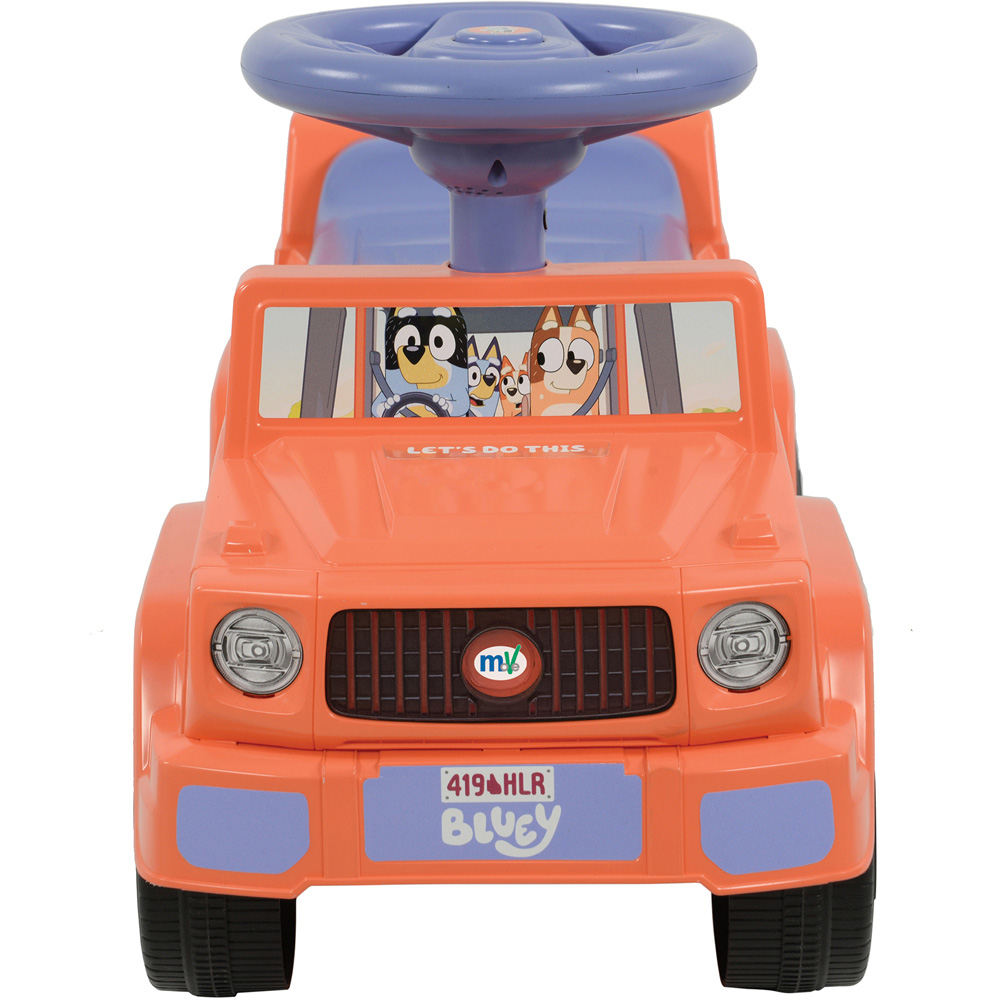 Buckle up for a barking good time with the Bluey 4 x 4 Ride-On! This paw-some ride is officially licensed with Bluey, featuring bright decals and components that will make your little one buzz with excitement! An ideal first foot-to-floor ride on, your child will be zooming around in style. Equipped with a working horn and sounds, this ride-on is ready for any adventure! The chunky, deep tread tires provide stability and optimal grip, ensuring a smooth ride on any terrain. The comfortable moulded seat and backrest make for a cosy ride, perfect for developing balance and coordination. Whether it's a birthday or Christmas, this ride-on is the ultimate gift for any Bluey fan. So, hop on board and let the fun begin - it's time to go on a wild ride with Bluey!