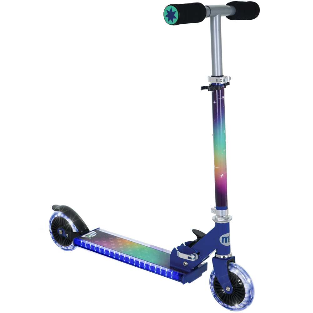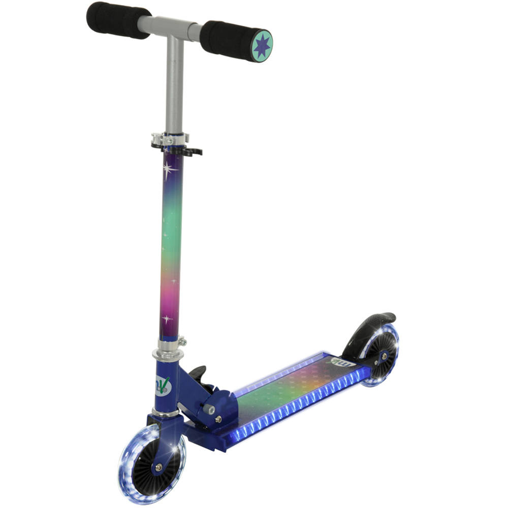 Make a stylish addition to your little one’s toy collection with the MoVe Electro Lite Nova Folding Inline Scooter. It features LED lights on the deck and wheels, adding both style and visibility to every journey. This scooter has a reactive rear footbrake, providing reliable stopping power when needed. The vibrant graphics including a fully printed stem wrap, add to the colourful look of the scooter. It also features a convenient folding design and quickly collapses for easy storage and transportation. The maximum user weight is 50kg, and this scooter is suitable for riders of all sizes. Suitable for kids aged three years and above. There is no assembly required for this scooter, and it comes in a full-colour box with a carry handle.