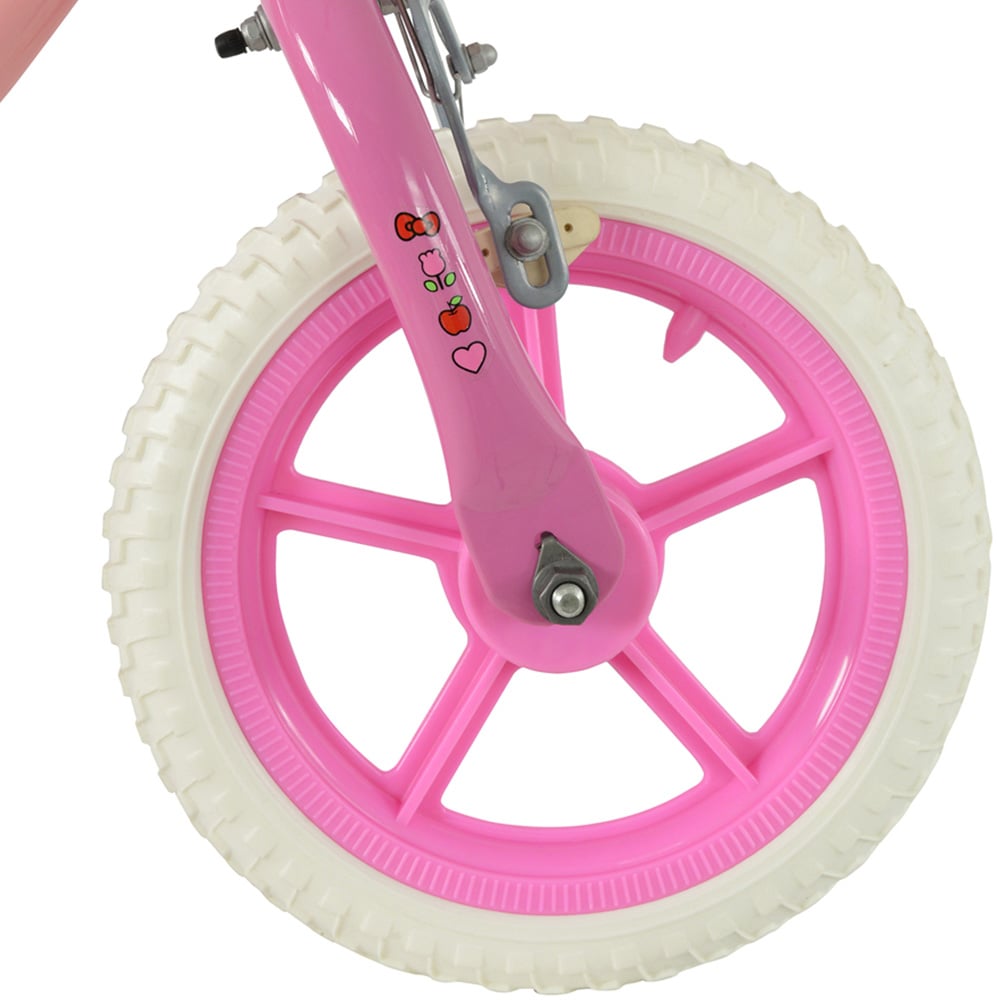 The Hello Kitty My First 12-inch Bike is the ultimate ride for little Hello Kitty enthusiasts. Decked out with vibrant character graphics and a charming handlebar basket, this bike is a delightful addition to any young rider's adventures. Built with a robust steel frame and puncture-proof EVA tyres, it ensures durability and stability for endless fun. Equipped with front and rear calliper brakes for swift stops and a fully enclosed printed chainguard for added safety. Plus, with adjustable handlebar and seat heights, it grows with your child as they build confidence and coordination. Whether they are cruising with stabilizers or mastering balance on their own, this bike promises a smooth and comfortable ride every time. EN71 tested and CE UKCA compliant for peace of mind. Let the Hello Kitty My First 12-inch Bike be your little one's trusty companion on their journey to pedal-powered adventures.