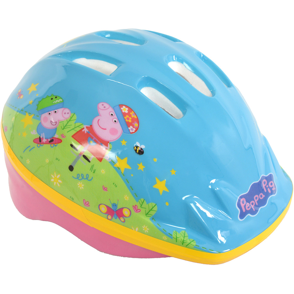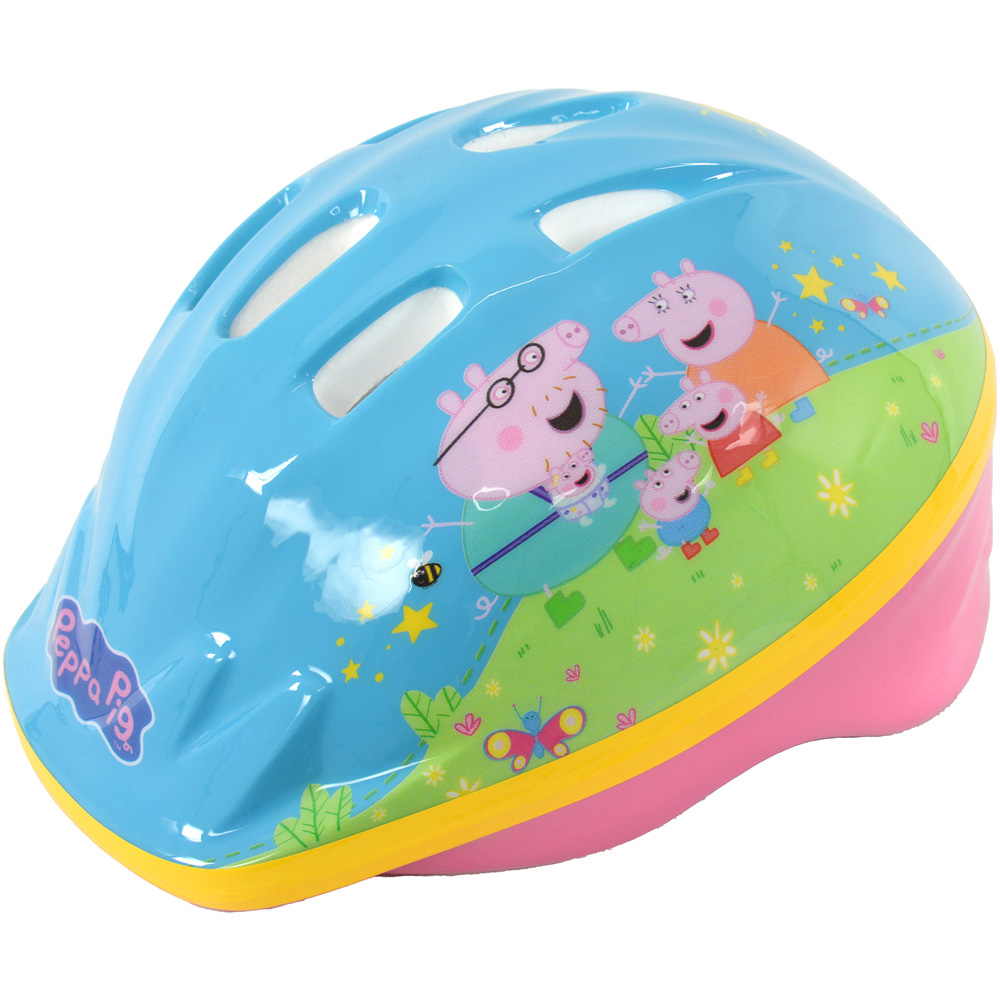 Pedal into safety and style with this Peppa Pig Safety Helmet. This helmet isn't just about protecting your head it's about doing it with flair. Decked out in delightful Peppa Pig decals, it's like having your own little adventure buddy right on your head. But don't let the cute design fool you, this helmet means business. Crafted with a durable EPS inner material that's been safety tested to the highest standards, it's tough enough to handle all your outdoor escapades. Plus, with its adjustable size dial, removable foam padding, and adjustable chin strap, you can customise the fit for ultimate comfort and security. And let's not forget about ventilation. The ventilated shell keeps your head cool and fresh, so you can stay cool as a cucumber even on the hottest days. So, whether you're cycling, scootering, or skating, ride confidently knowing you've got Peppa Pig watching over you every step of the way. Safety first, fun always.