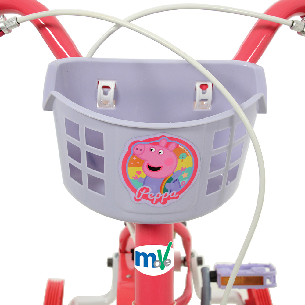 Your little ones will have ultimate fun while riding the MoVe Peppa Pig My First 12 inch Bike. This officially licensed design with brightly coloured decals and a custom-shaped character plaque is the ultimate choice for young adventurers. It is equipped with front and rear calliper brakes for swift stops and a fully enclosed printed chainguard for added safety. The sturdy steel frame and puncture-proof EVA tyres ensure durability and stability. The handlebar and seat height are adjustable according to their preference. The handlebar grips provide comfort and control, making it easy for small hands to steer with confidence. This bike is tested for safety with EN71 testing and has CE UKCA compliant construction. Suitable for children aged three years and above.