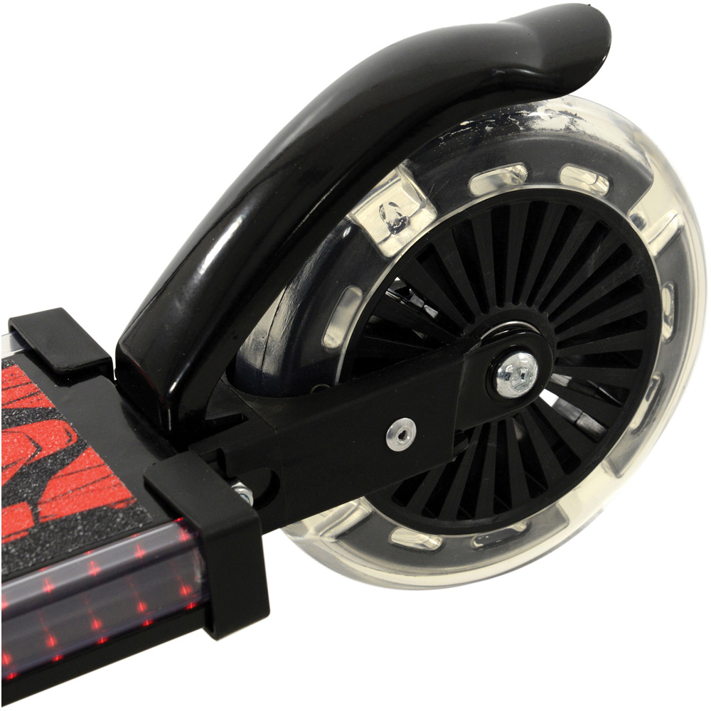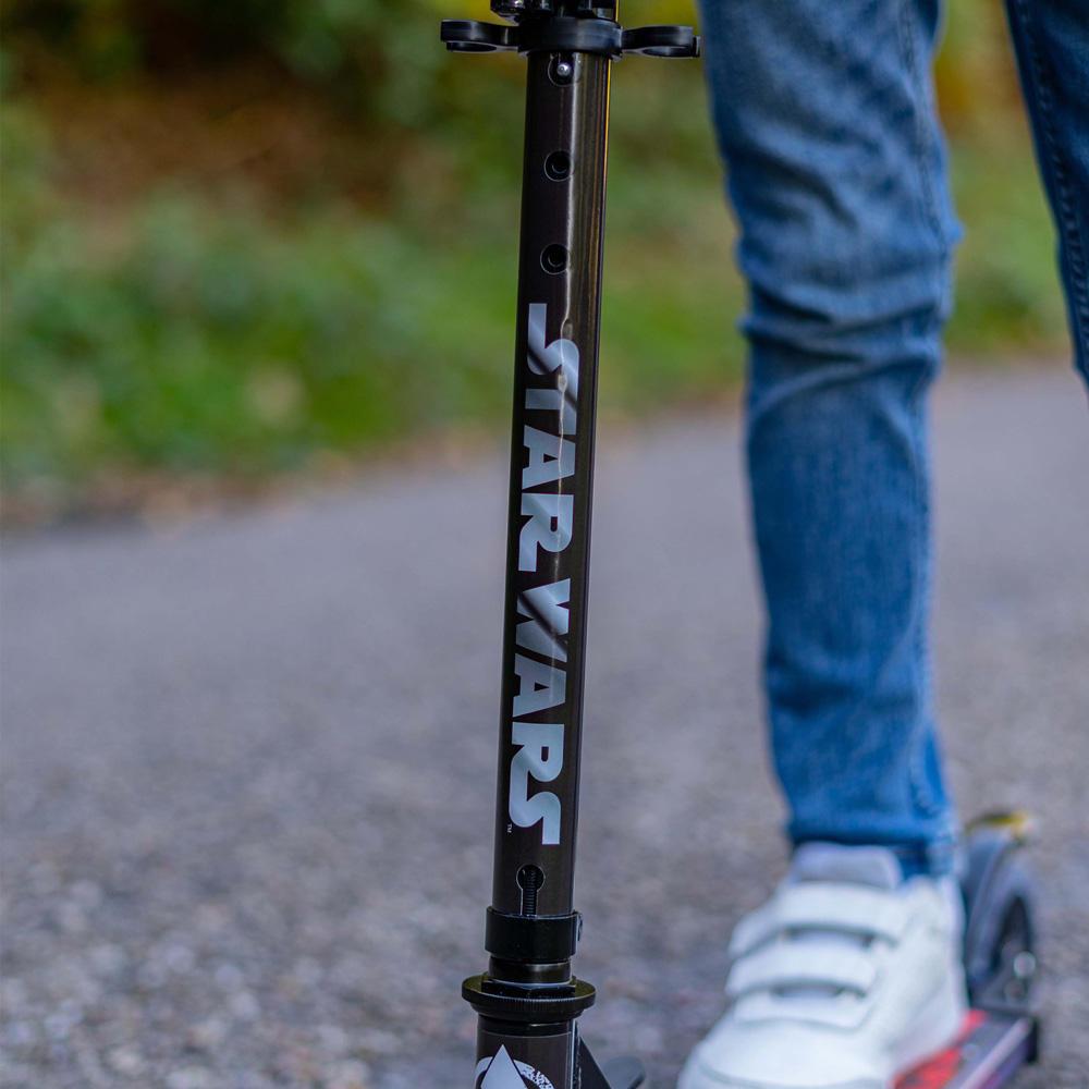 Introducing, from a galaxy far, far away, the MoVe Star Wars Dark Side Light Up Folding Inline Scooter, the ultimate ride for young adventurers! Illuminate the streets with Sith red LED lights on the deck and wheels, adding both style and visibility to every journey. With its convenient folding design, this scooter quickly collapses for easy storage and transportation, perfect for on-the-go fun. Safety is paramount, thanks to the reactive rear footbrake, providing reliable stopping power when needed. Plus, bold, iconic graphics ensure you ride in style wherever you go. Best of all, there's no assembly required – it's ready to ride straight out of the box! With a maximum user weight of 50kg, this scooter is suitable for riders of all sizes. Get ready to light up the streets with the MoVe Star Wars Dark Side Light Up Folding Inline Scooter!
