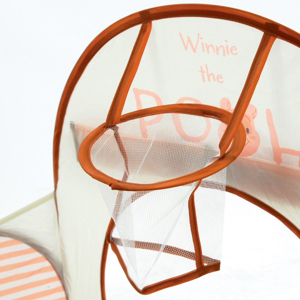 Enter a world of excitement and interactive play with the Winnie the Pooh activity ball pit which includes balls and a basketball hoop. With colourful printed panels featuring Pooh and his pals that will make your little one feel like they are entering the world of the Hundred Acre Wood. Suitable for children aged 12 months and up, this ball pit will encourage imaginative and hands-on play. The ball pit's quick-up design allows for instant play and folds back down for easy and convenient storage. In addition to this, with the durable materials, the ball pit is perfect for both indoor and outdoor play. Whether your little one is spending time with Pooh and friends, embarking on a magical adventure, or simply enjoying some imaginative solo play, the Winnie the Pooh quick-up activity ball pit is the perfect product for endless fun and laughter. Get ready for fun play, and let the adventures begin.