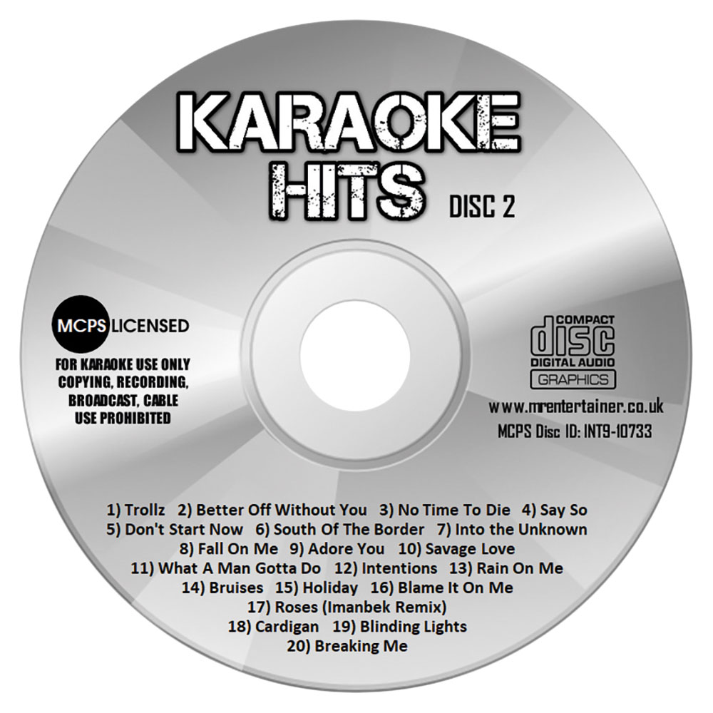 Sing along to the year's biggest hits with this Mr Entertainer Silver 2020 Hits Karaoke CDG Disc. This CDG offers 40 of the most popular tracks from 2020, featuring a diverse range of artists and genres. The double CDG includes hits such as Ariana Grande and Justin Bieber's "Stuck With U," Billie Eilish's "Everything I Wanted," and more. This CDG is compatible with most karaoke machines and is perfect for parties or any other occasion.