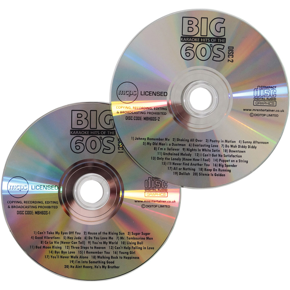 Sing along to popular numbers with this Mr Entertainer 60s Hits Karaoke CDG disk in classic silver. The double CDGs include a diverse selection of big hits from a range of musical styles and genres. Offering the user 40 tracks of 60s hits, you can take a trip down memory lane with Beatlemania, The Summer of Love and Mods, along with many more. Suitable for use with most karaoke machines.