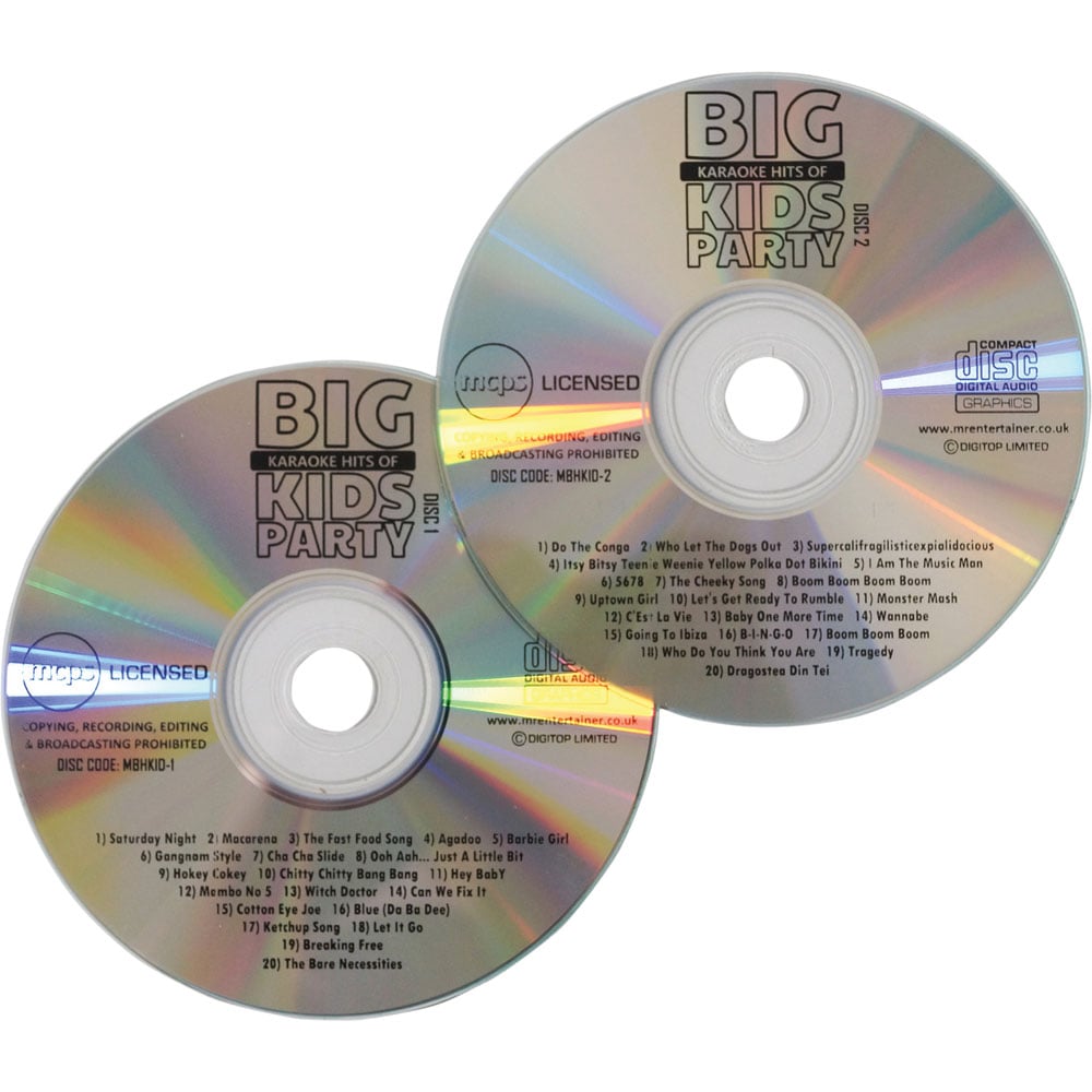 Sing along to popular numbers with this Mr Entertainer Kids Party Karaoke CDG disk in classic silver. The double CDGs offer 40 tracks with a diverse selection of big hits from a range of musical styles and genres. Suitable for use with most karaoke machines, it is perfect for a party for the little ones.