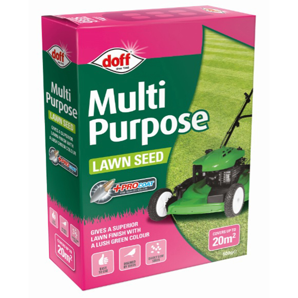 Ensure your lawn look fresh, thick, and healthy with Doff's Multi-Purpose Lawn Seed. This 500g box of seeds can cover up to 20m, making it perfect for most standard gardens. Simply sprinkle the seeds across the bare patches of your lawn, and quickly the new blades will sprout up to bring some revitalised greenery.