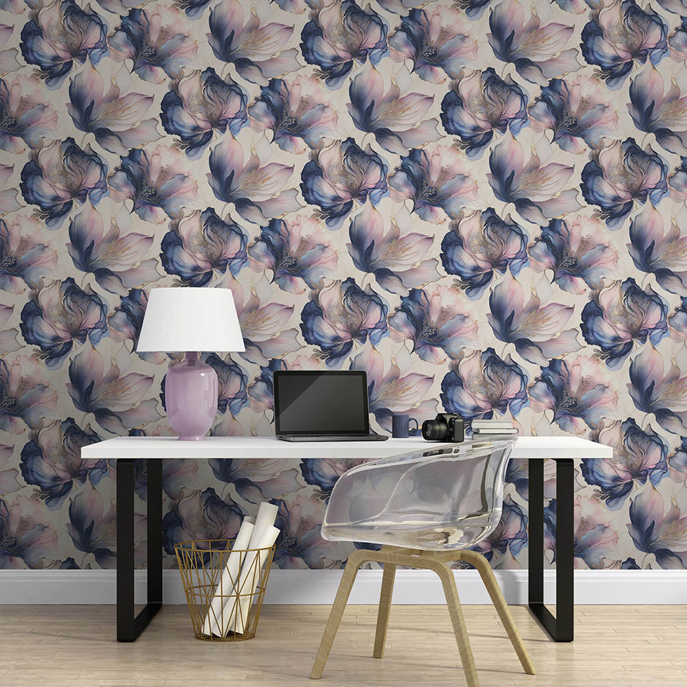 Elegantly upgrade your home walls with this Muriva Elysian Floral Multi Wallpaper. Soft, delicate and dreamlike. Elysian Floral has a etheral styled large flowers, enhanced with soft touches of metallic inks combined with a sublte marble effect background.