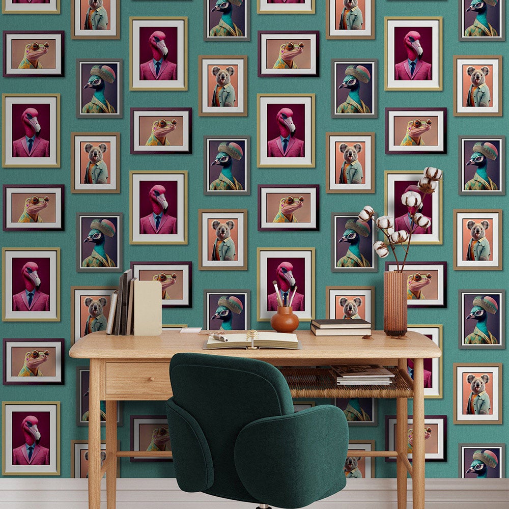 Go on a safari with the Muriva Fantastic Animals Wallpaper. A modern gallery wall of fun and quirky framed animals. This brightly coloured design features a cute koala and a stylish peacock. A great feature wall and will bring a smile to anyone.