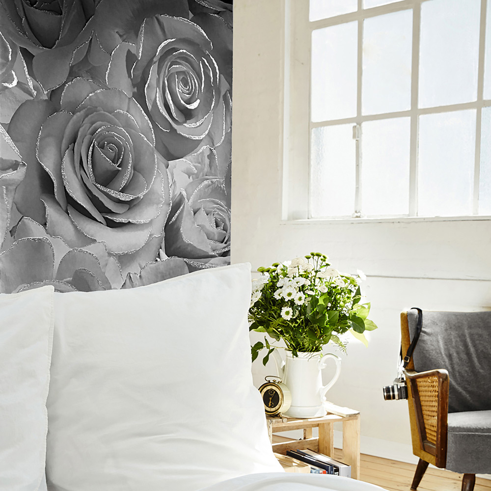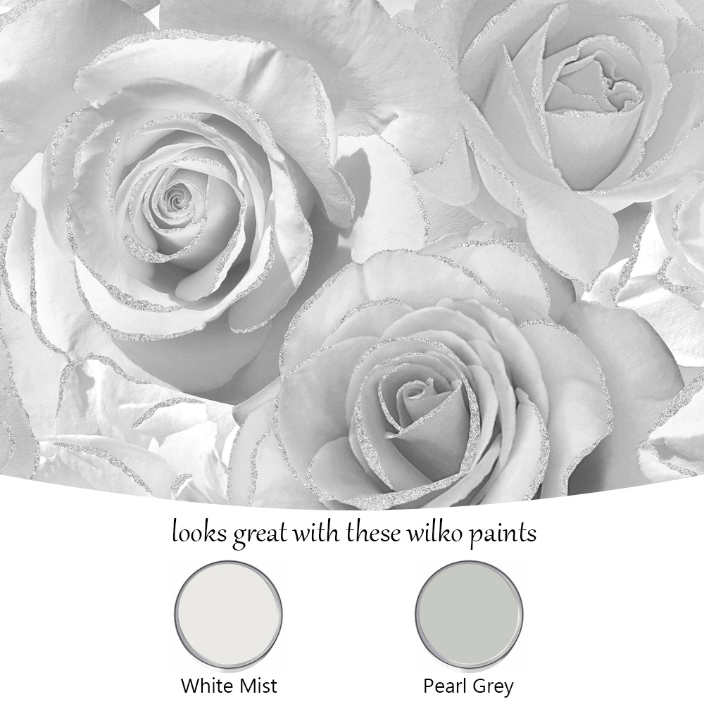 Bring your room back to life with Muriva Madison Glitter Silver Wallpaper. The large-scale photographic roses are expertly coloured to give a soft and dimensional look. Featuring clear get with thousands of tiny particles of glitter - it is added to highlight only the delicate edges of the petals to catch the daylight like fresh dewdrops. The hanging instructions are provided on the back of the label. Easy to hang - the high-quality wallpaper is wipeable and has a smooth finish. Application: Paste the paper. Design match: Offset. Design repeat: 53cm. Roll length: 10.05m. Width: 53cm.