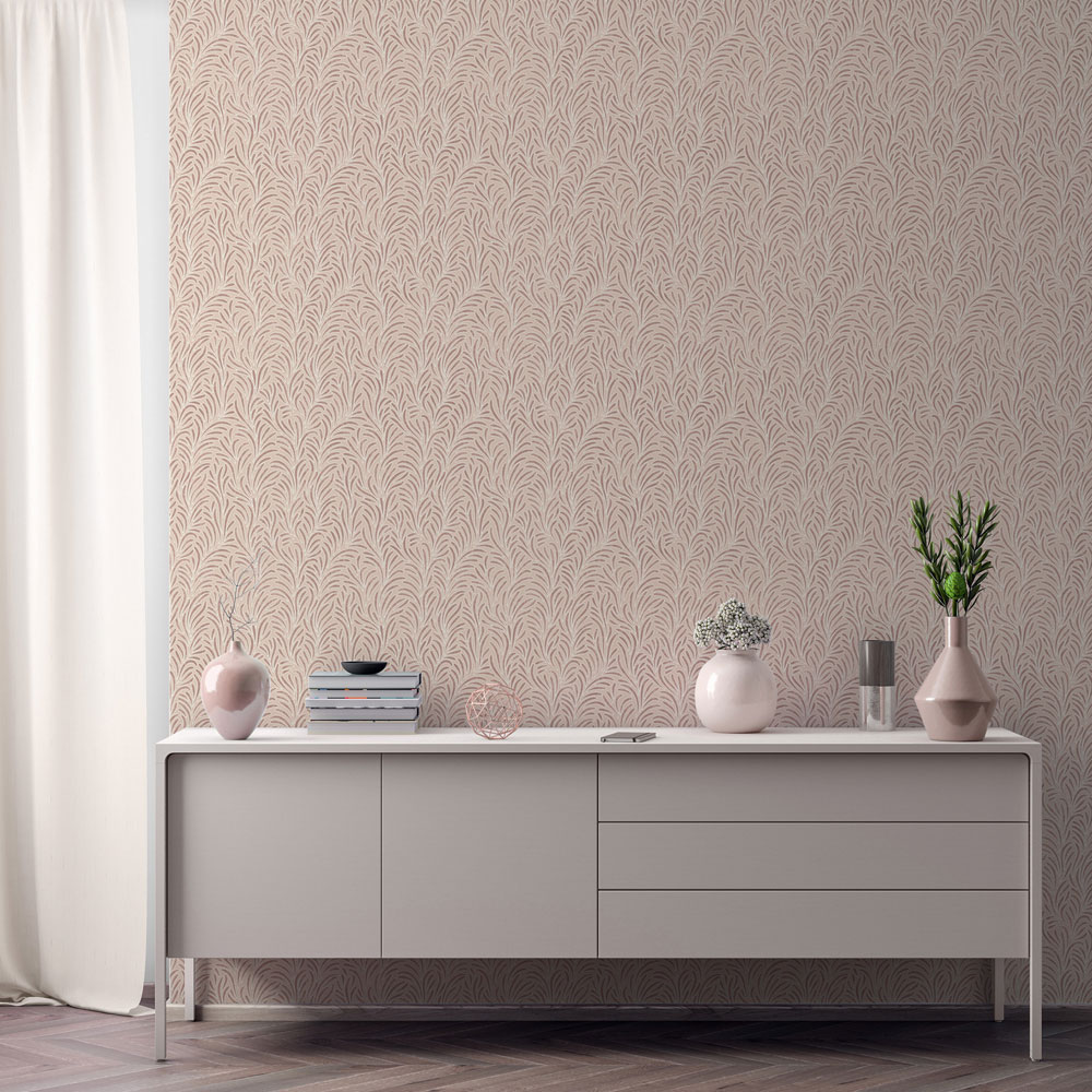 Add style and elegance to your indoor space with this Muriva Shasha Blush Wallpaper. This floral glitter wallpaper features a soft feminine design inspired by leafy trails. Also, the design is enhanced with pearlescent inks to create movement and depth. Easy to use, the wallpaper comes with hanging instructions on the back of the label and has a simple paste-the-paper application. Also, easy to clean, this product is wipeable and can be maintained effortlessly. Application method: Paste the paper. Design Match: Straight Match. Design Repeat: 53cm. Roll Length: 10.05m, Width: 53cm.