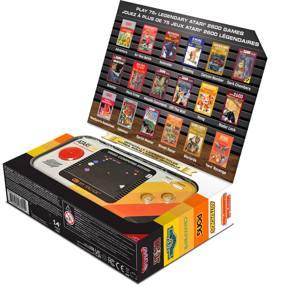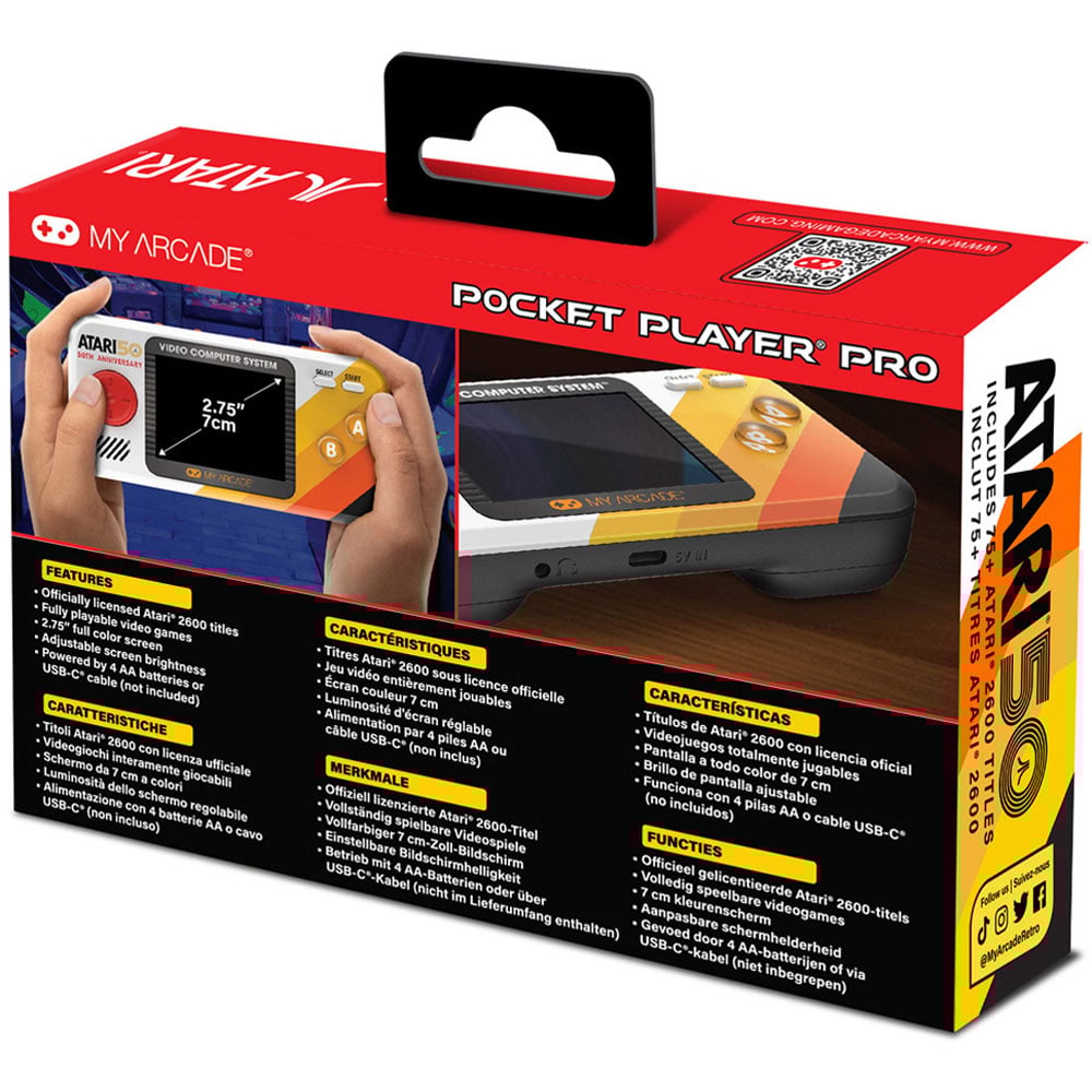 Step back in time with the My Arcade 100 Game Atari Pocket Player Pro Gaming System, a handheld system that celebrates the golden age of gaming. Featuring 100 built-in Atari 2600 titles, this officially licensed device includes iconic games. the 2.75-inch full-colour display and ergonomic design ensure a comfortable and immersive gaming experience wherever you go.