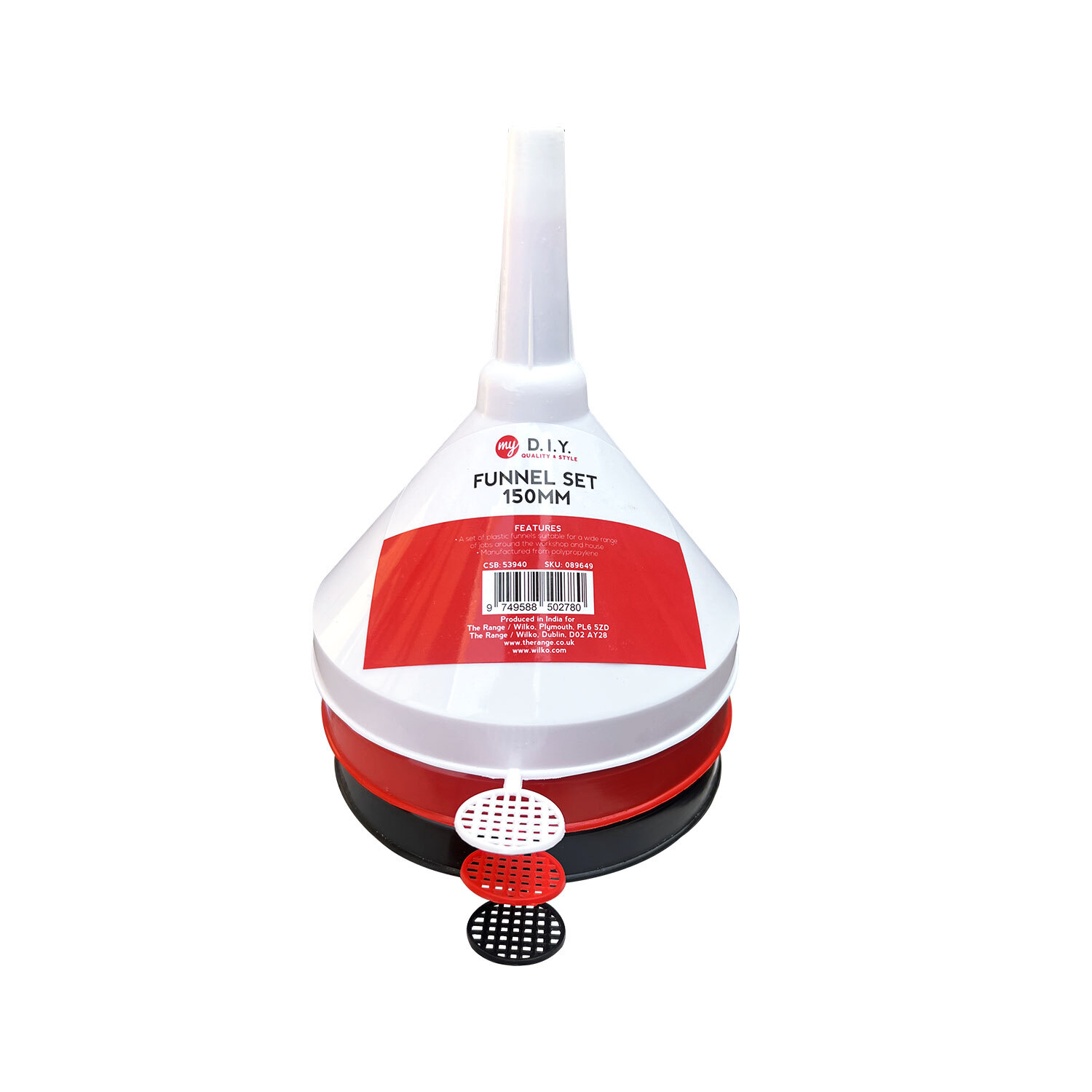 Simplify work with My DIY Funnel Set. This set includes three funnels, perfect for pouring liquids, powders and other small items without spills. Made with durable materials, these funnels are suitable for various tasks around the workshop and house.