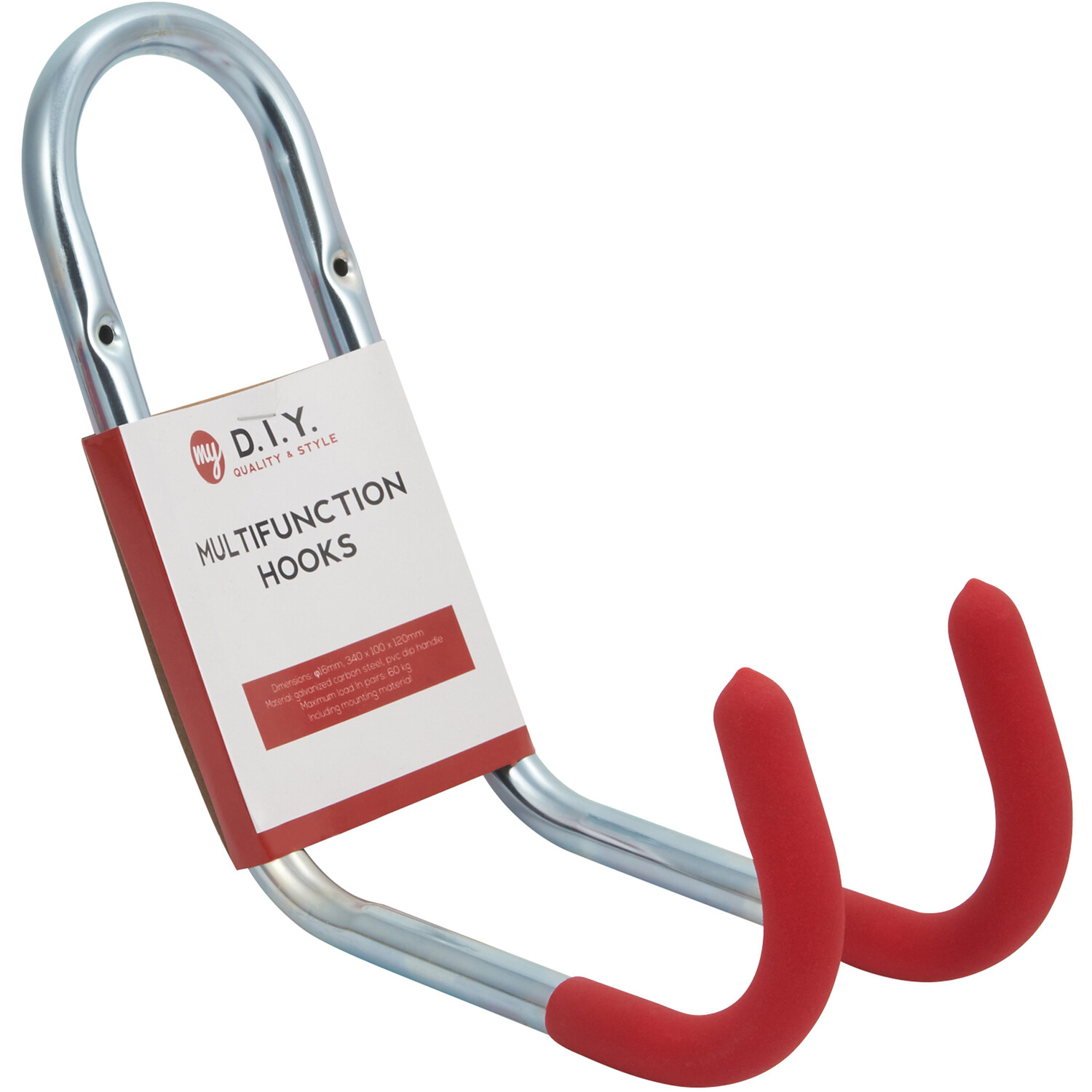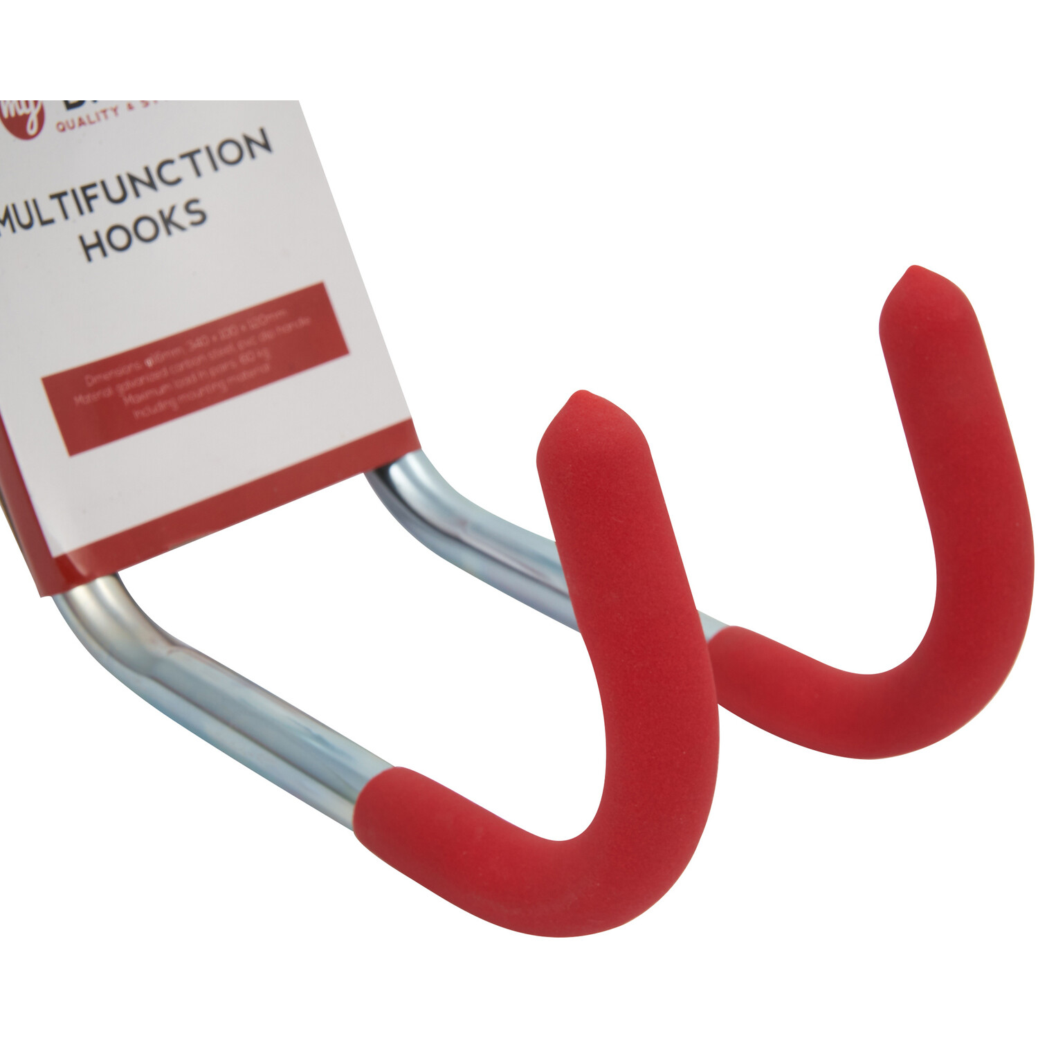 Make a functional addition to your workshop or outdoor space with the My DIY Multifunction Hook. Featuring a maximum load capacity of 60kg in pairs, the hooks are suitable for hanging garden equipment, tools, pipes, and much more. Crafted with galvanised carbon steel and a PVC dip handle, it makes an essential for your workspace, garden, or home. Easy to use, the pack includes mounting material for effortless installation.