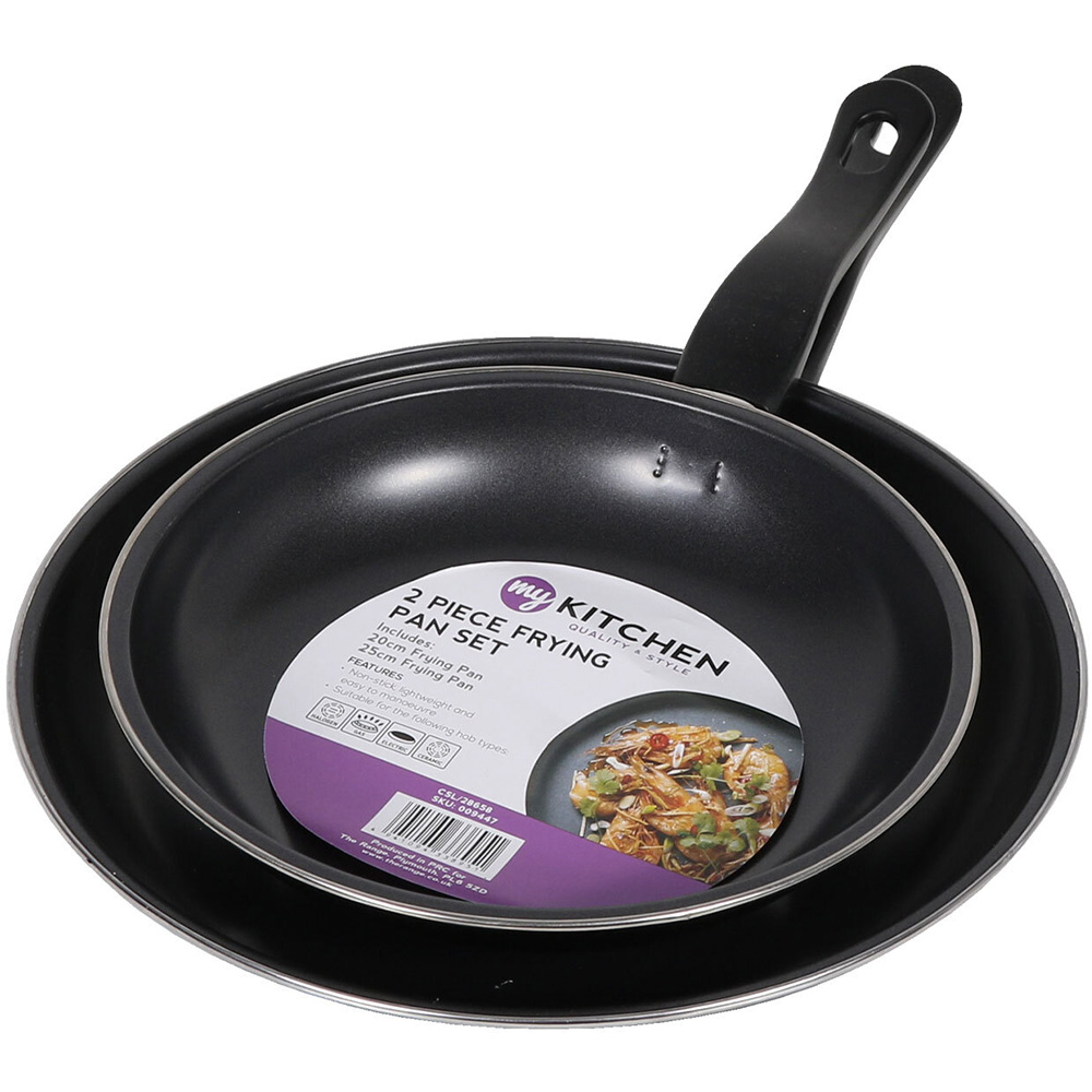 Whether you're cooking for yourself or your whole family, this Set of Two MY Frying Pans will make a helpful addition to your kitchen. This handy set includes a 20cm and 25cm frying pan, both with a lightweight design for easy manoeuvrability and a non-stick surface for quick cleaning.