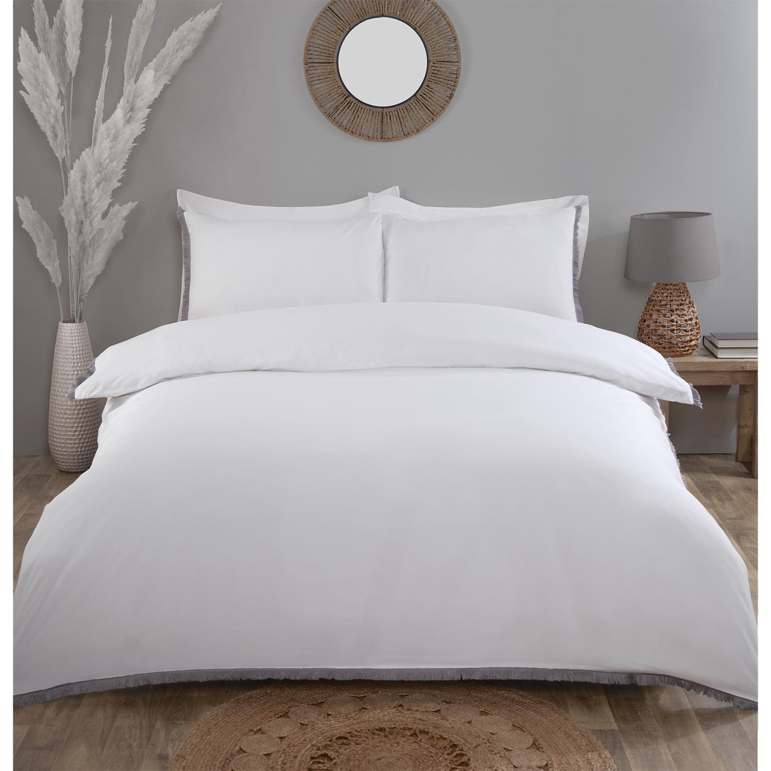 With a soft touch feel, you can sleep in peaceful comfort with this cosy My Home Bohemia Tassel Duvet Cover and Pillowcase Set. In a crisp white colour with a fashionable black fringed edge, this duvet set will add a touch of modern style to your bedroom.