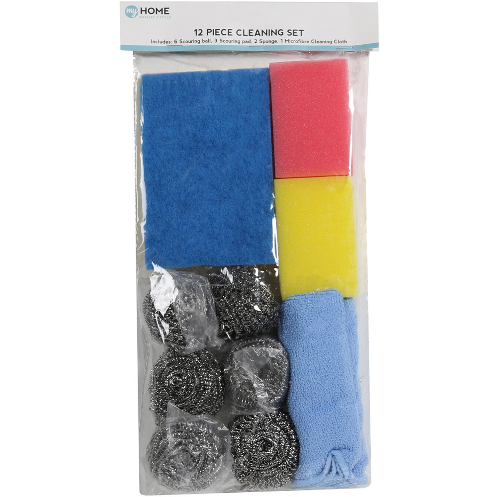 Perfect for anyone moving home or looking to restock their cleaning supplies, this My Home Cleaning Set has twelve items for you to use. Including scouring balls, scouring pads, sponges and a microfibre cleaning cloth.