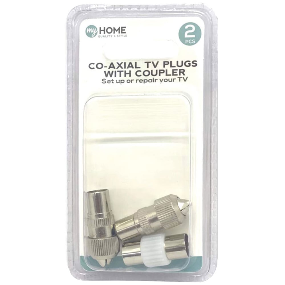 My Home Coaxial TV Plugs with Coupler 2 Pack